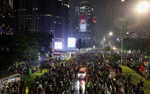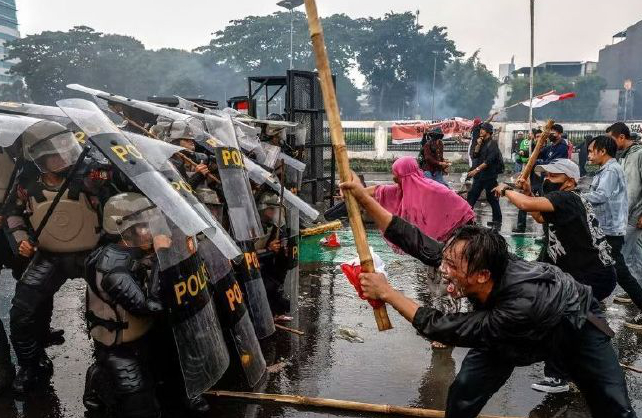 事件起因是印尼政府削减25%地区预算,保留议员高福利。 印尼国会议员月入超6000美元,普通民众月均收入仅190美元。民众要求最低工资标准提高10.5%、废除削弱劳工权益的《就业创造法》、取消外包制度及设立反裁员机制。 抗议者冲击议会大厦并纵火,骚乱蔓延全国。