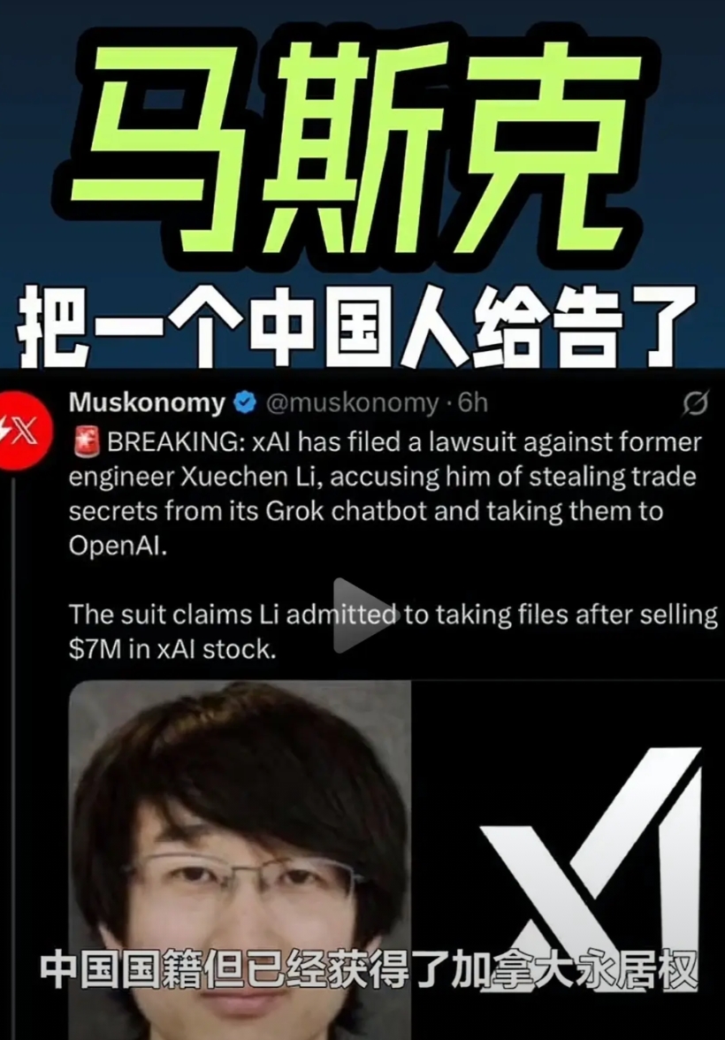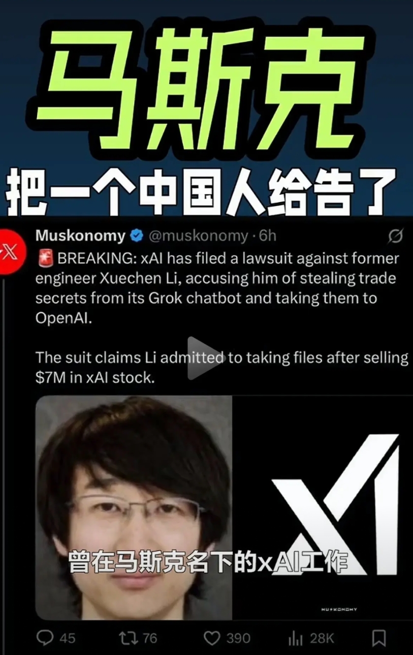 这个李雪沉明明知道马斯克和open ai是死对头,还把Xai的机密数据偷拿给open ai.