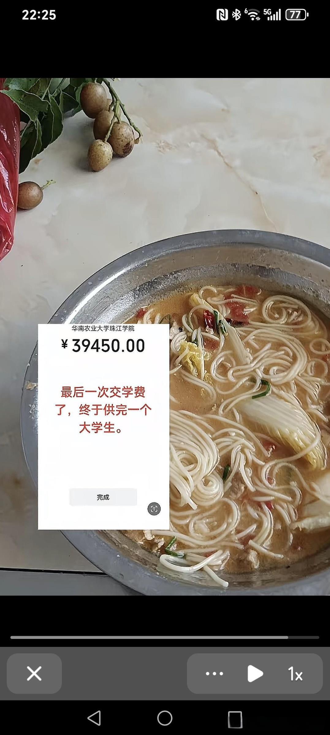 最后一次交学费,终于供完一个大学生~ 最后一次交学费39450,终于供完一个大学生,希望给我回报拜托。 等明年的时候你会发现,好不容易供完学费,又得供孩子上班了,现在的家长真的供不完根本供不完,供完上班又得准备彩礼嫁妆房子车子,回头想想还是供学费的时候最省钱。 这个学费的学校,真的没必要读,除了花钱没有任何意义,孩子也不会好好学,能去这个学校也不是什么好学生,认清自己,认清自己孩子,很重要。