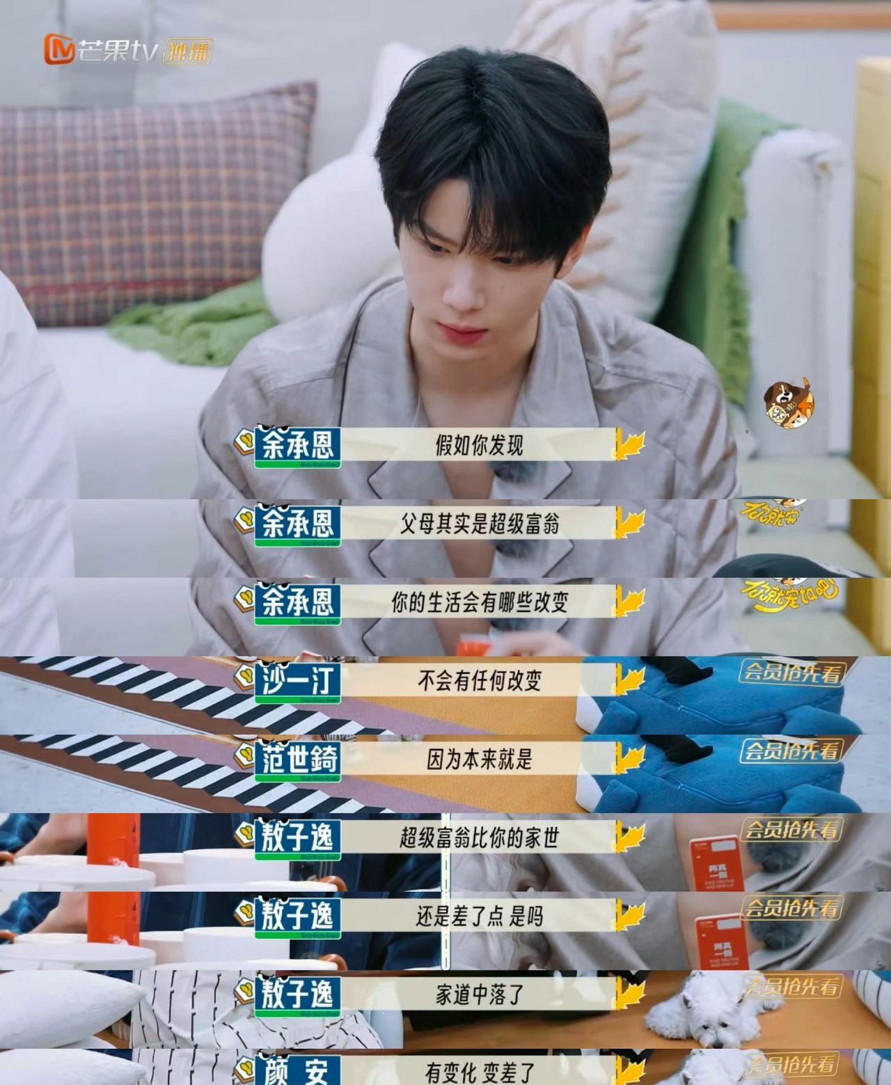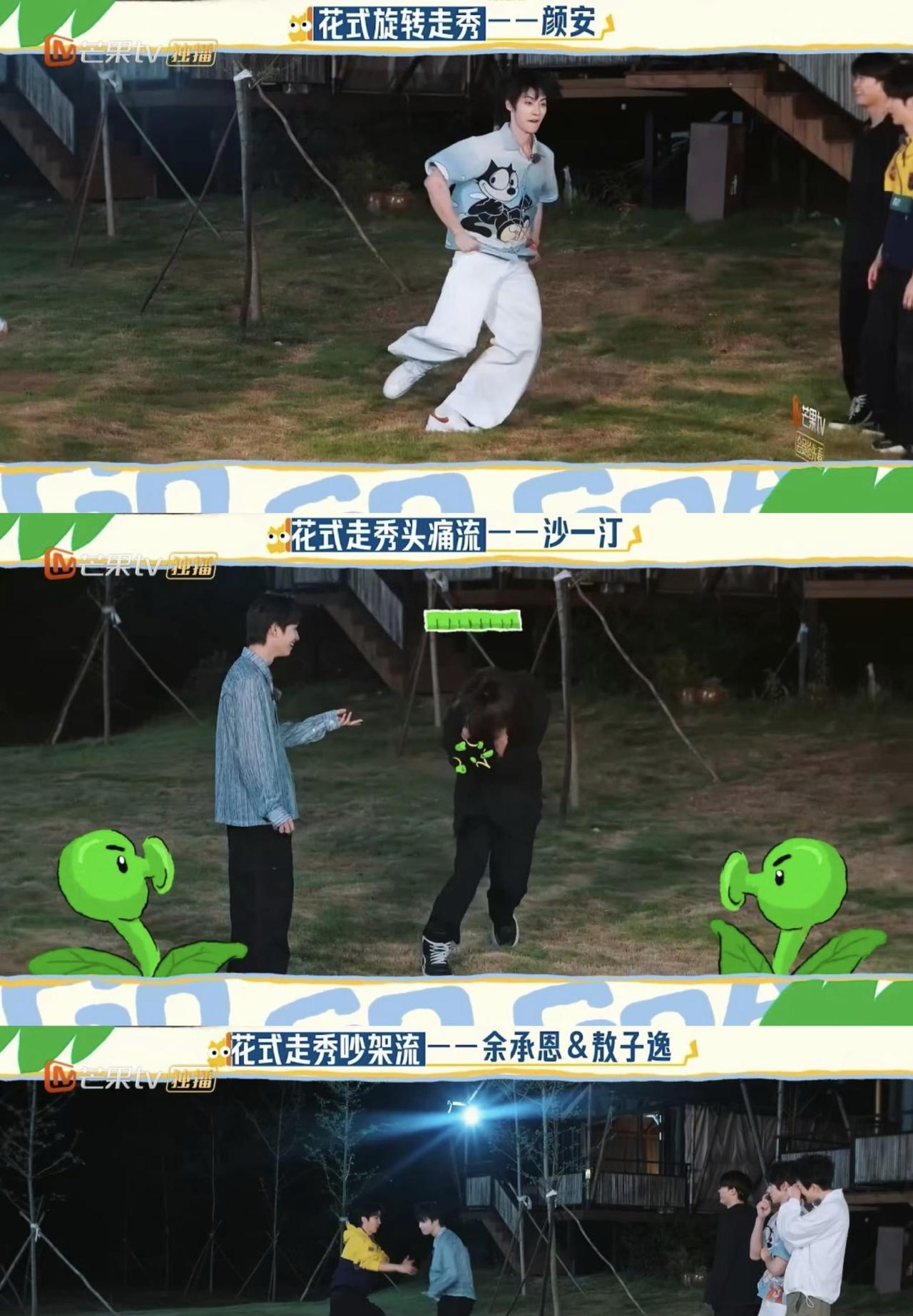 敖子逸、余承恩、颜安、沙一汀、范世錡五人合体太疯了!简直是现实版“魔童降世”,吵闹程度直接拉满谁懂啊!沙一汀开场就“整活”,模仿猫爷和植物大战僵尸走路超有梗;敖子逸和余承恩组队玩游戏像开了“自动跟随”,躲避游戏玩得明明白白;颜安教笛子舞一本正经讲精髓,结果秒变“群魔乱舞”人传人现场。全员无偶像包袱放飞自我,这状态太爱了,求“魔童”们闹得更猛烈些!