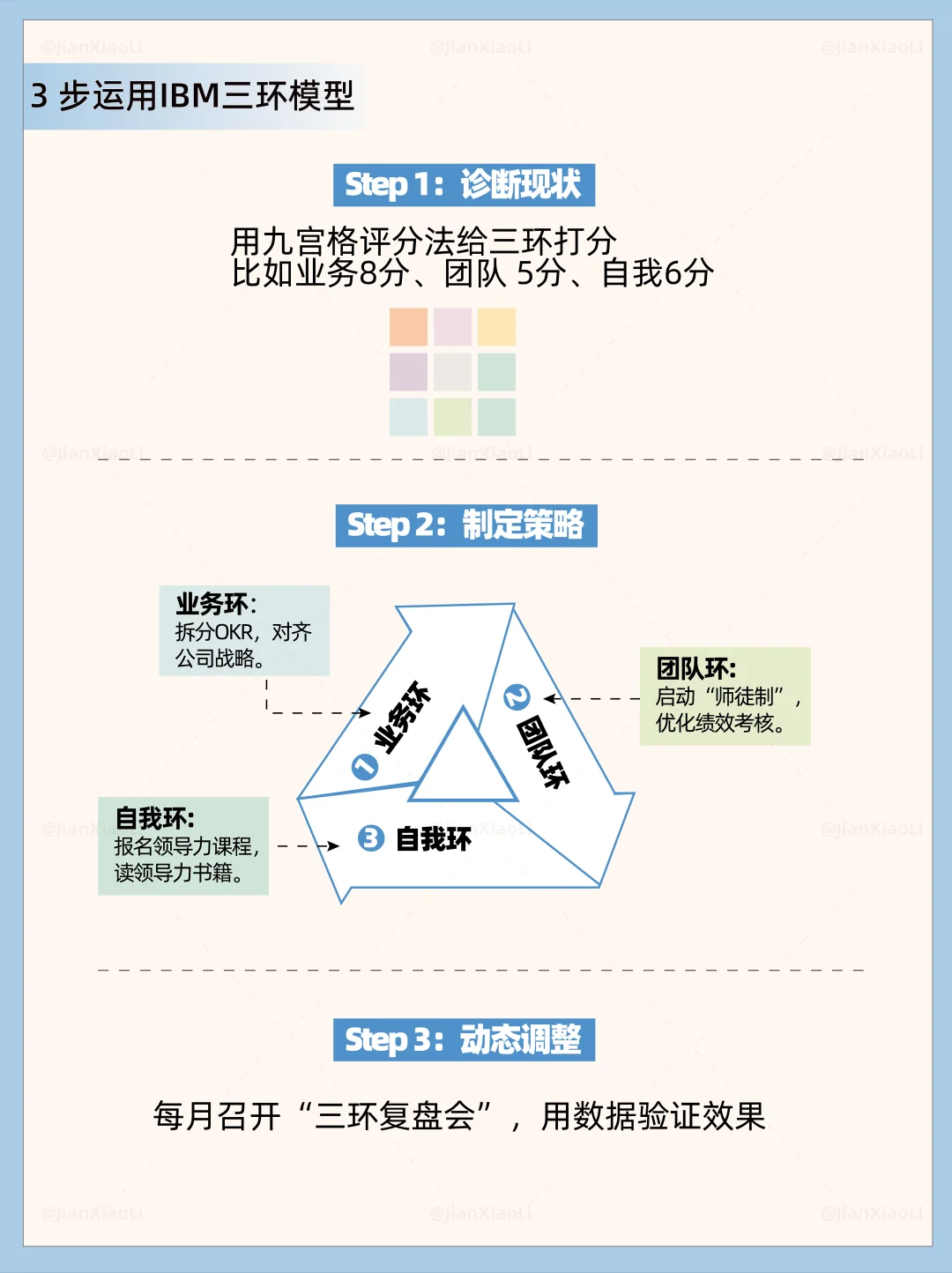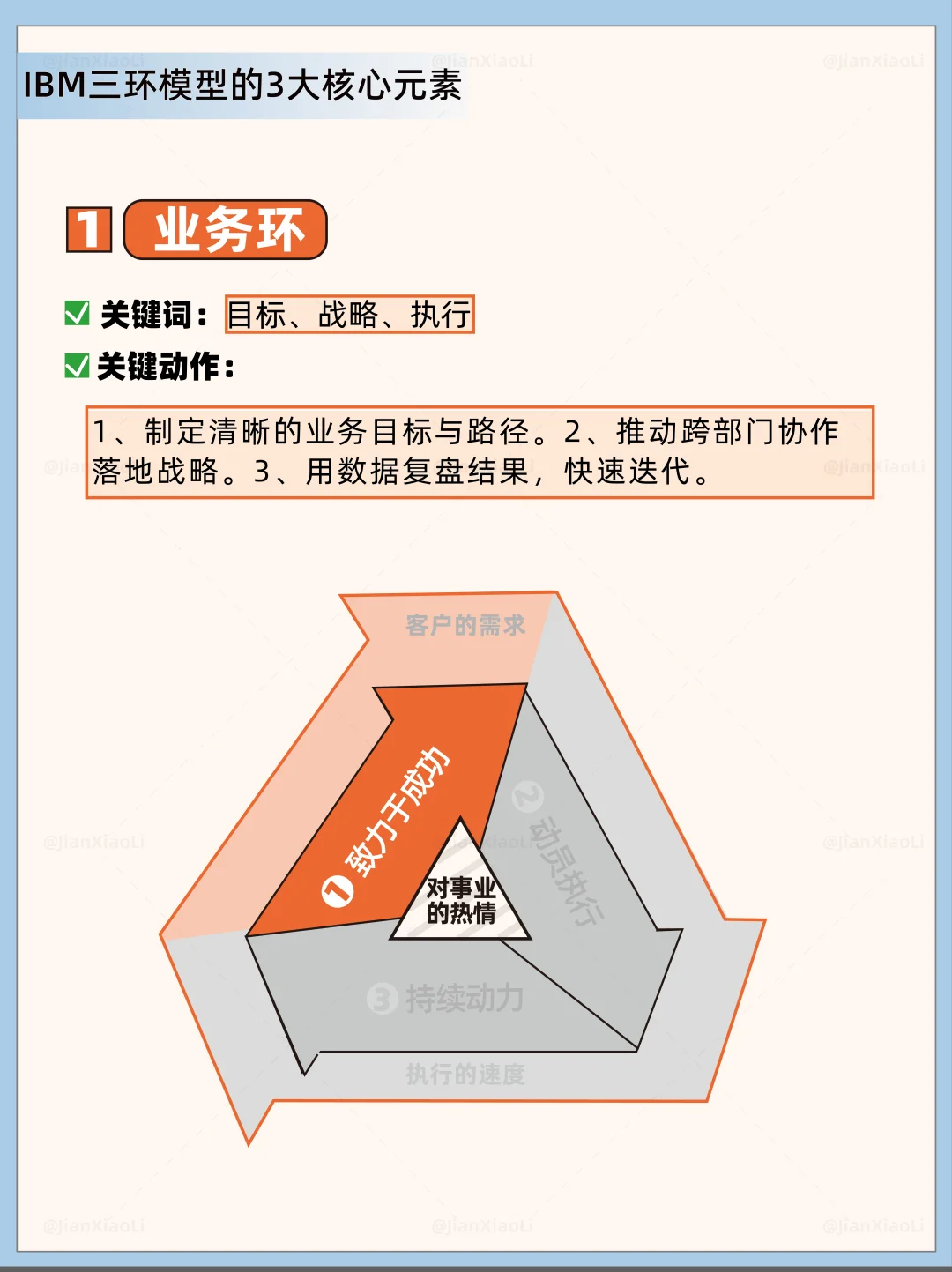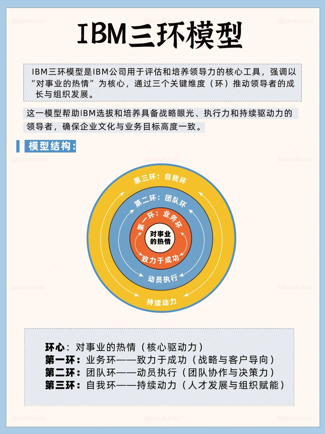 🌟IBM三环领导力模型是一个专注于提升领导效能的框架,它识别并强调了成为成功领导者所需的三个关键领域: