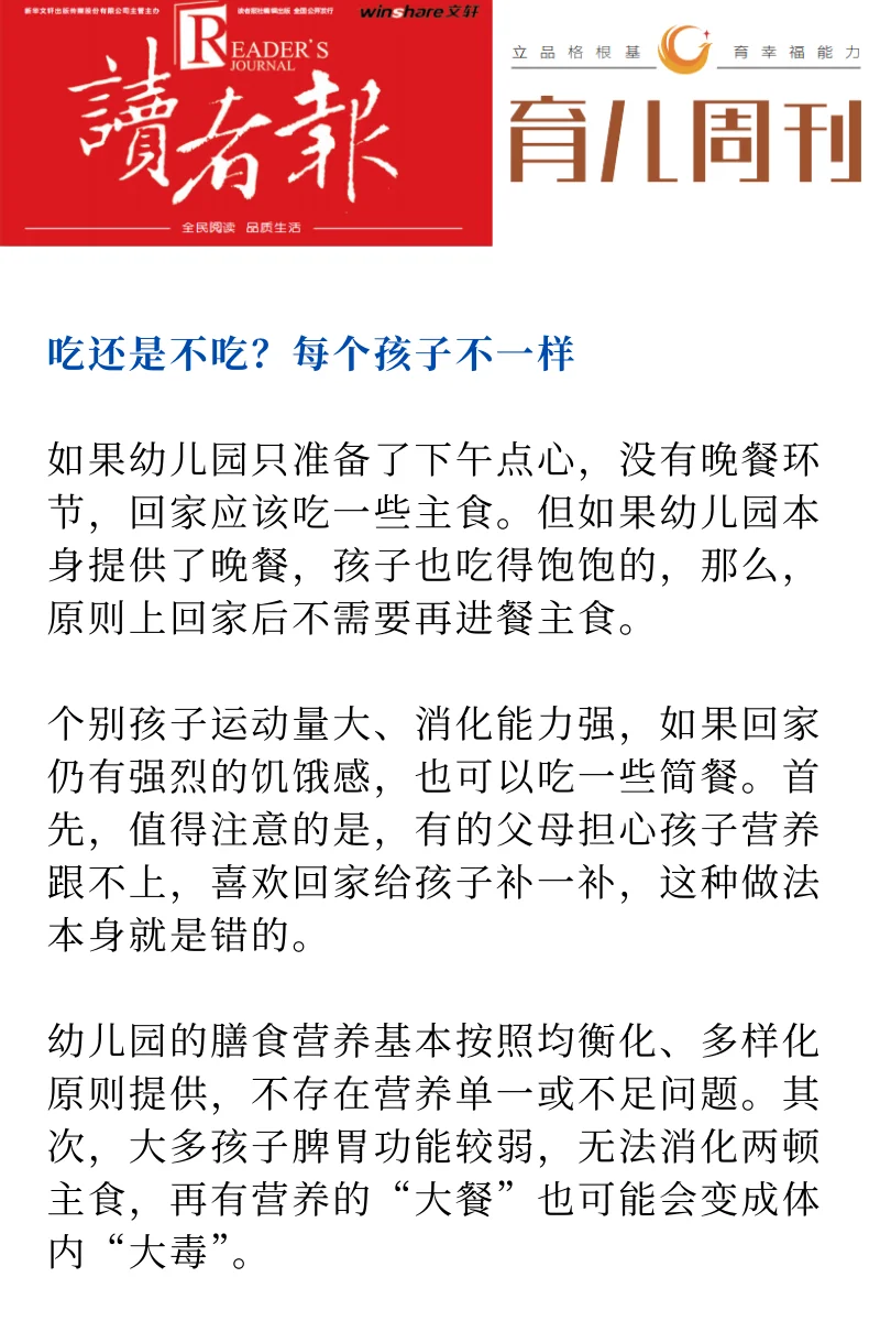 孩子在幼儿园吃了晚饭,回家还吃不?