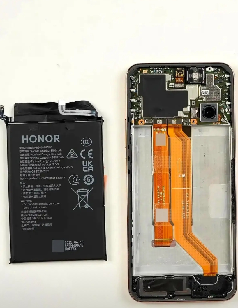 在荣耀X70这么薄的机身里面加入8300mAh的大电池,这不科学,直到看了新评科技的拆解才发现,这块电池居然做到了这么薄。