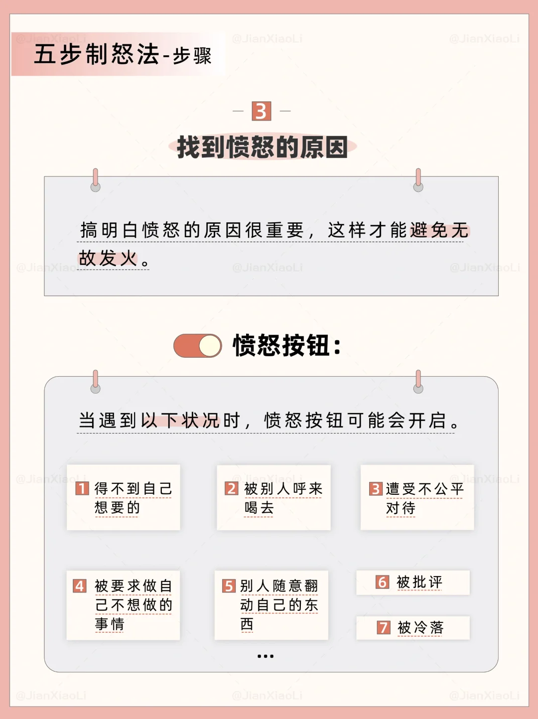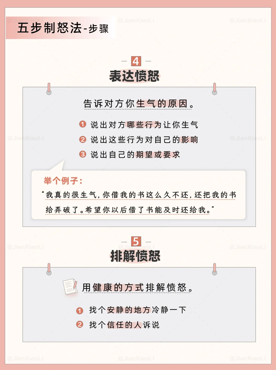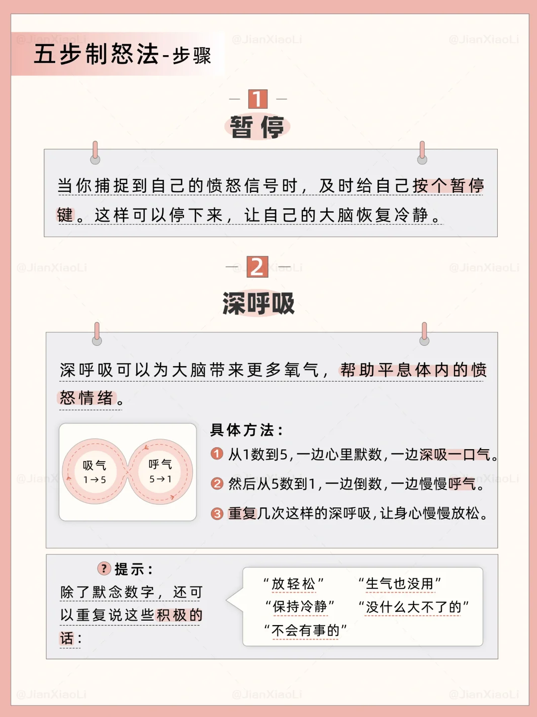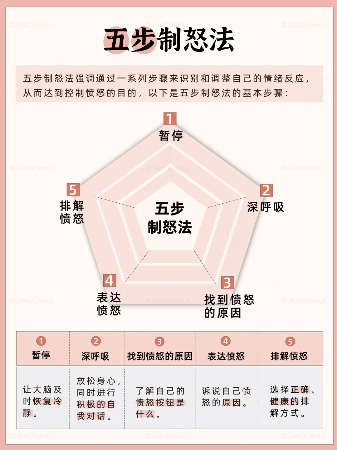 暂停→深呼吸→找到愤怒的原因→表达愤怒→排解愤怒