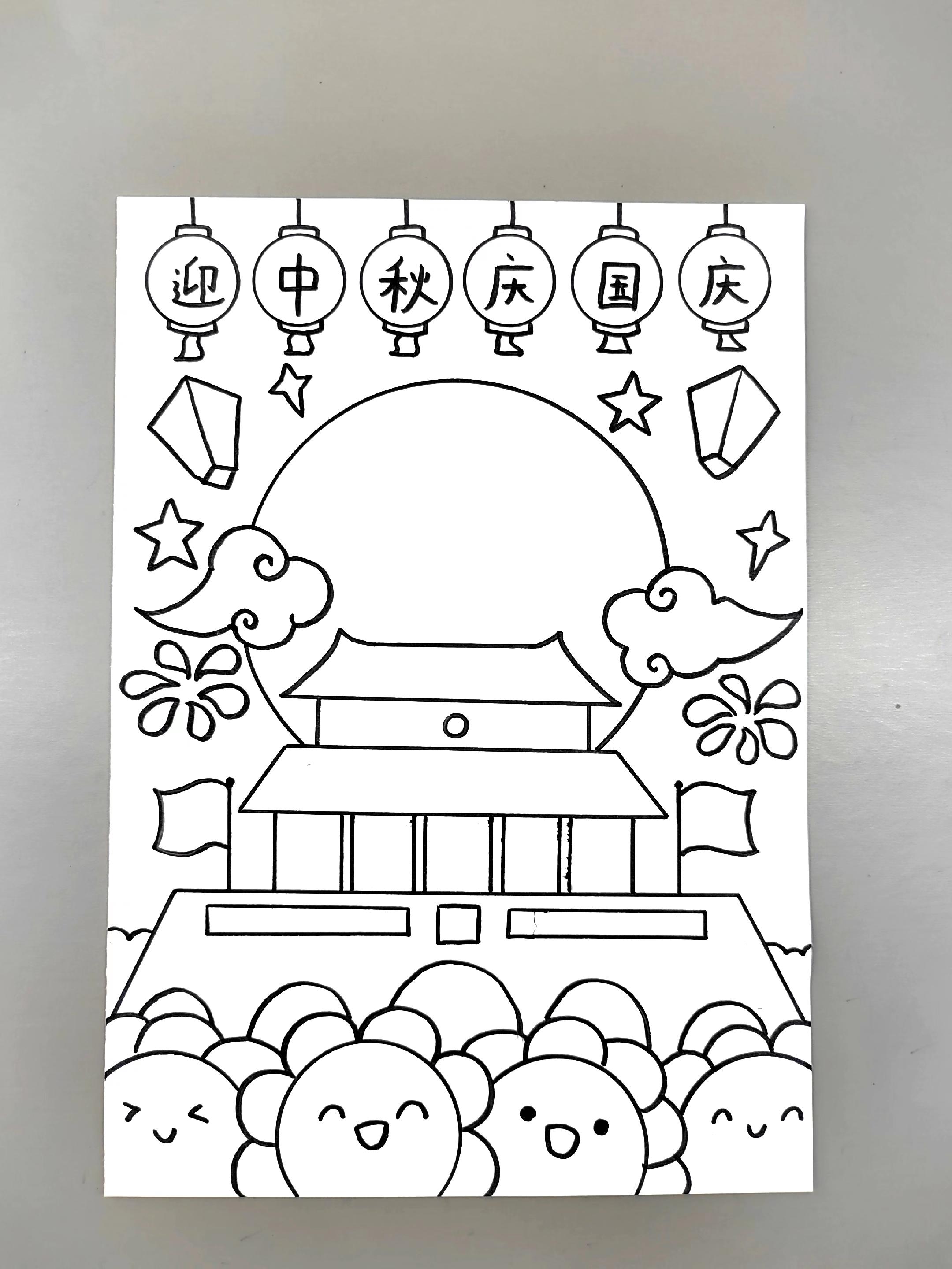 国庆中秋双节同庆主题画!国庆节,中秋节马上就要到了,和孩子一起画国庆中...