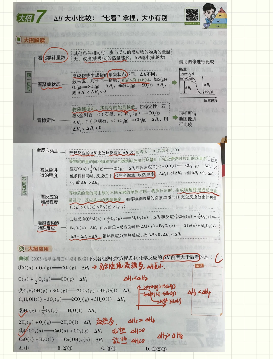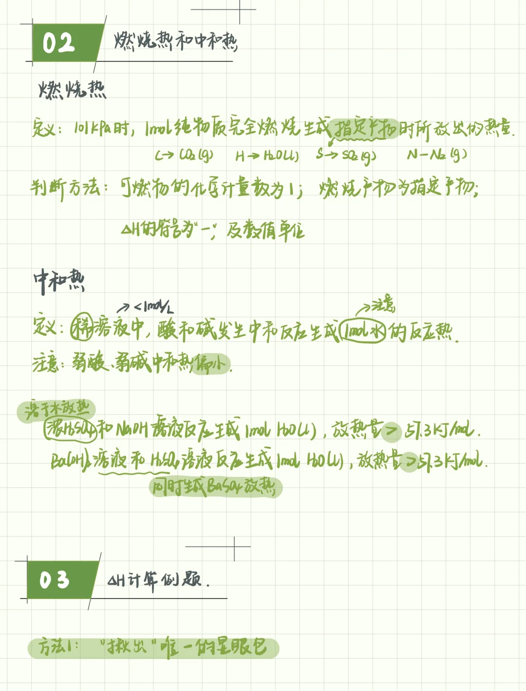 2️⃣了解燃烧热和中和热的区别,注意事项,比如燃烧热要注意1mol的可燃物,生成物是可燃物完全燃烧的产物;中和热要求稀酸稀碱生成1mol水放出的热量