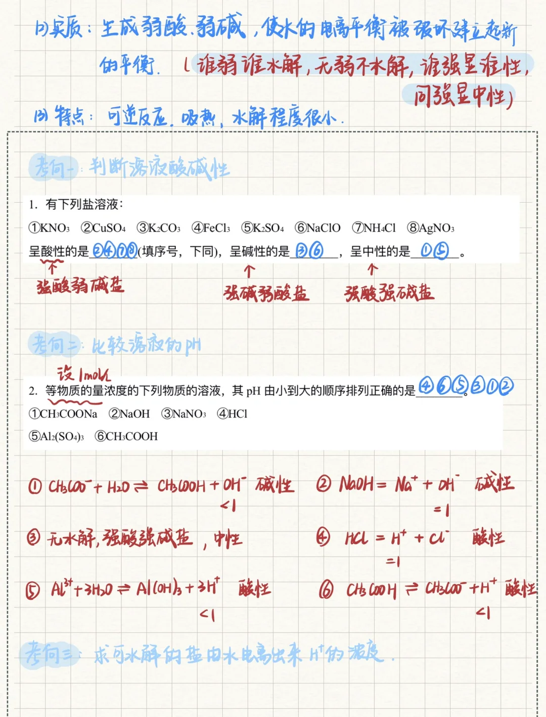 高二化学|选必一笔记📝盐类的水解总结‼️