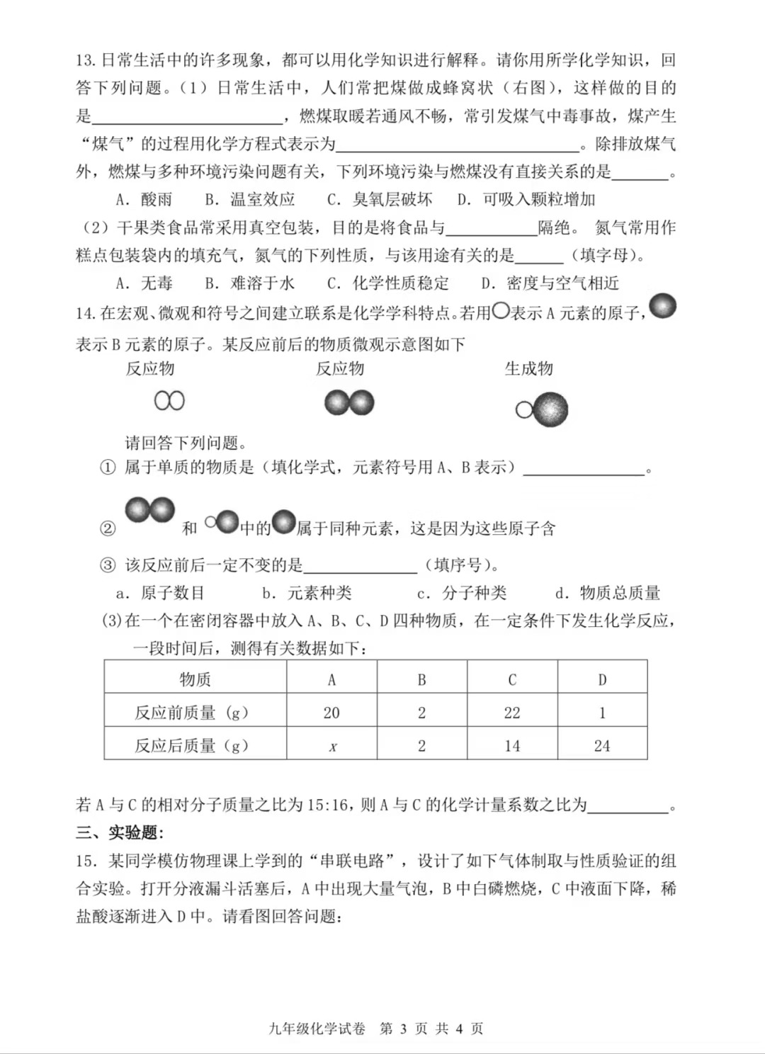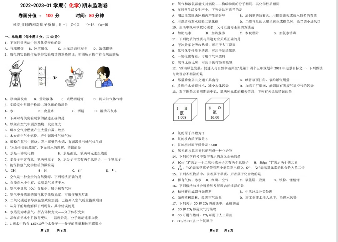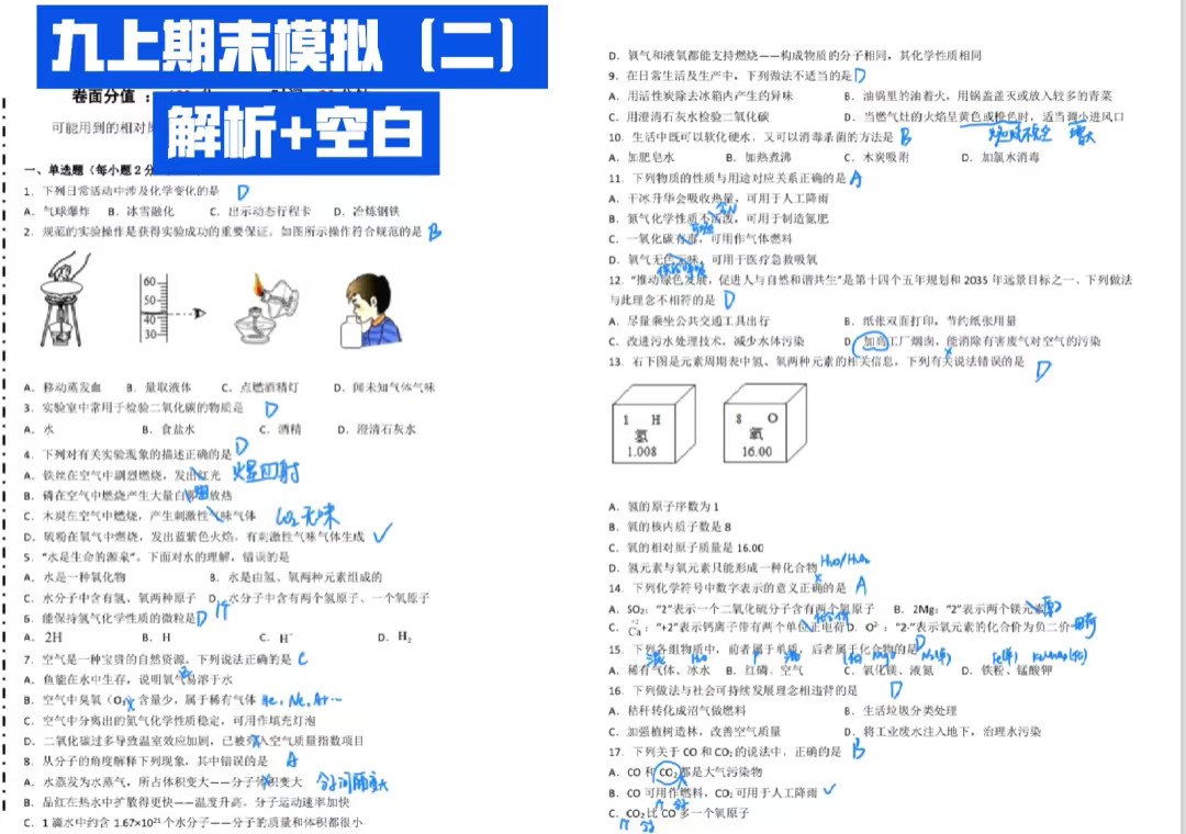 初三化学|周末练两套期末模拟卷吧✍️📃