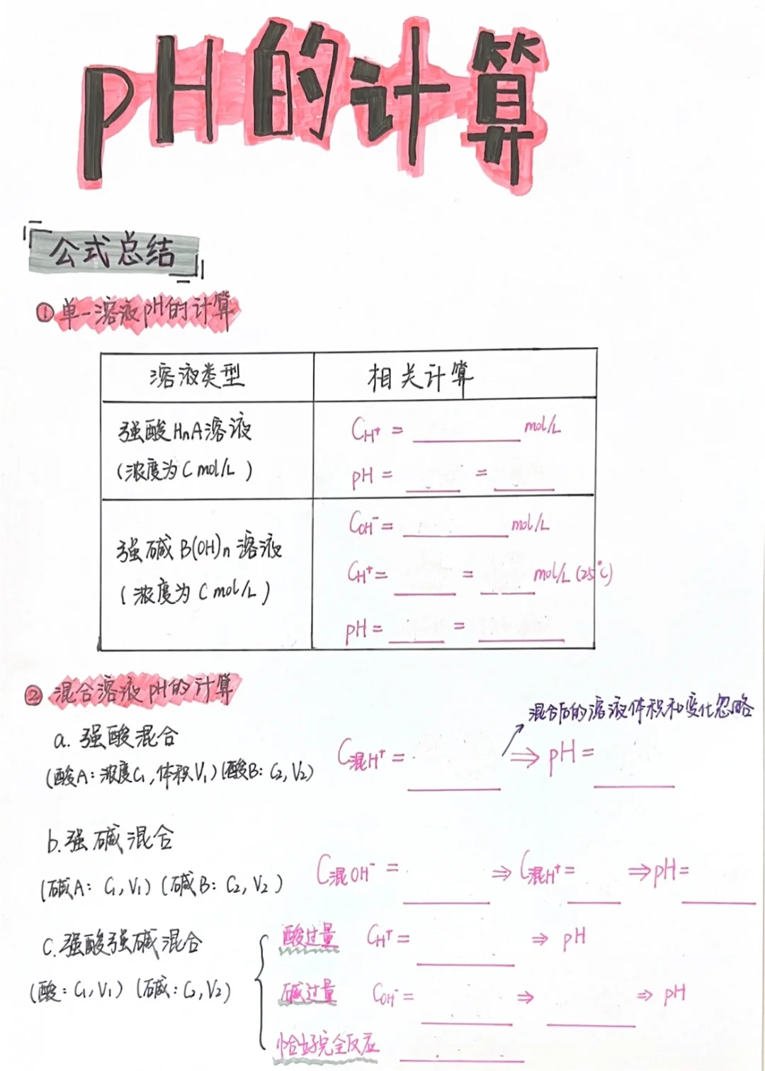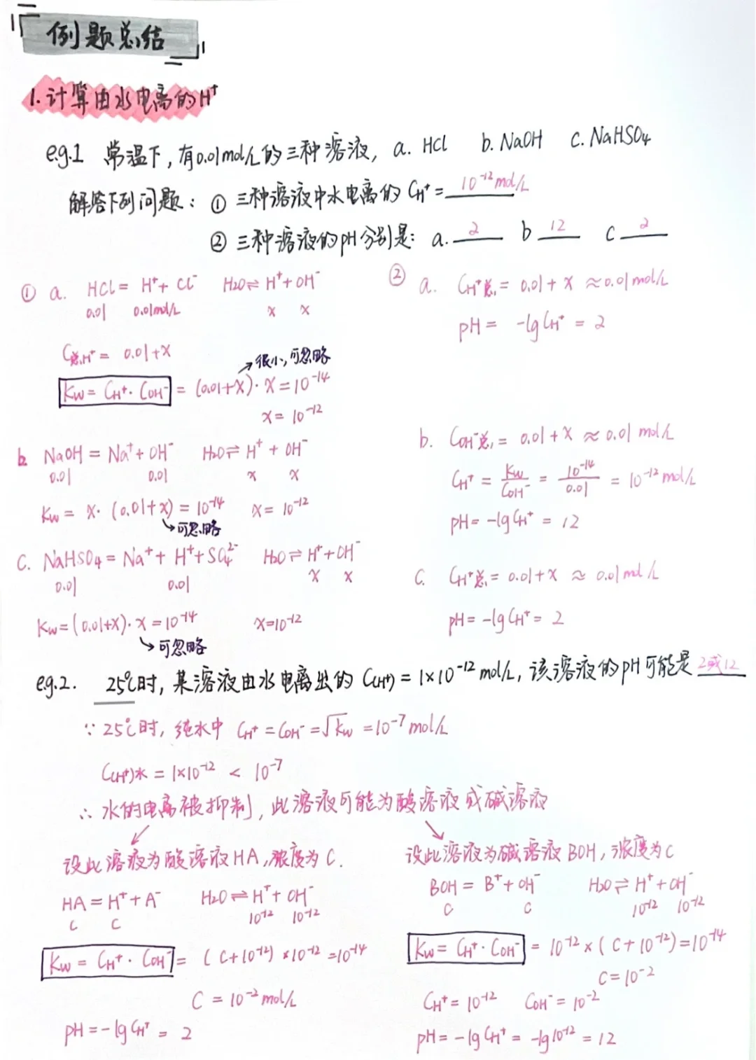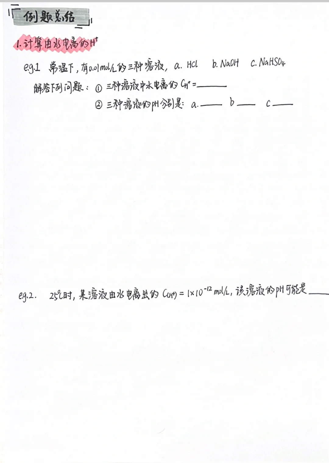 本次做例子的笔记:pH的计算的完整笔记和扣空版给大家放在最后啦!!