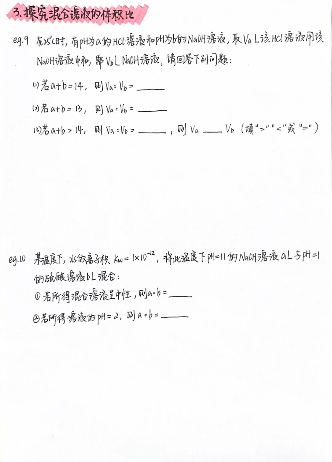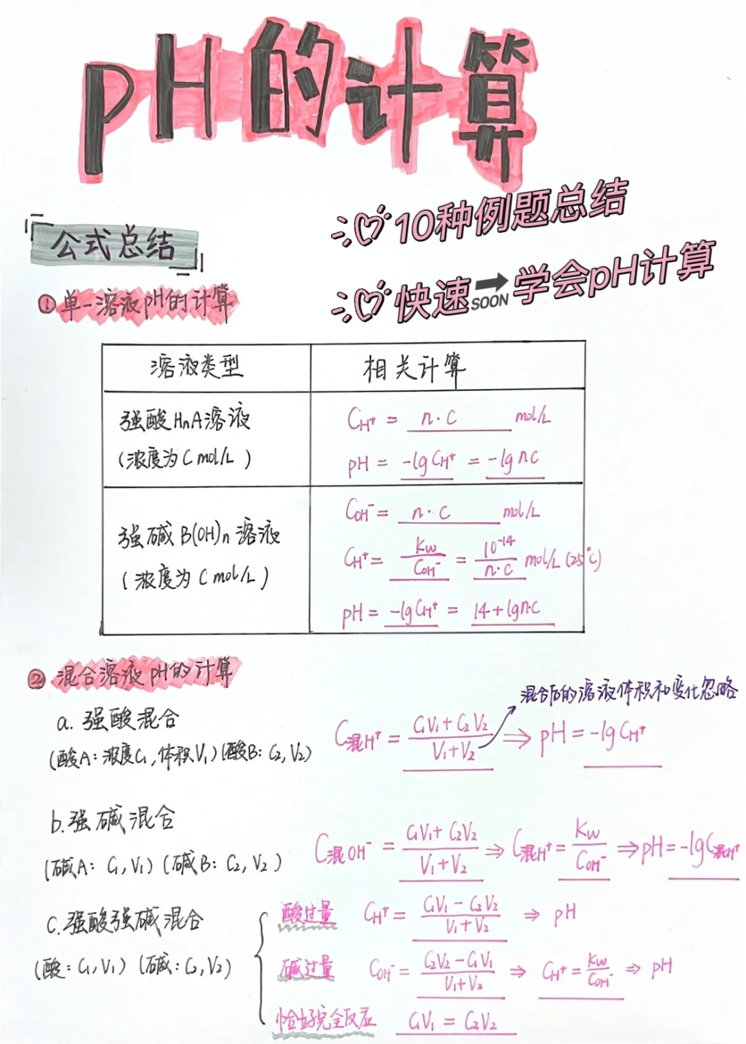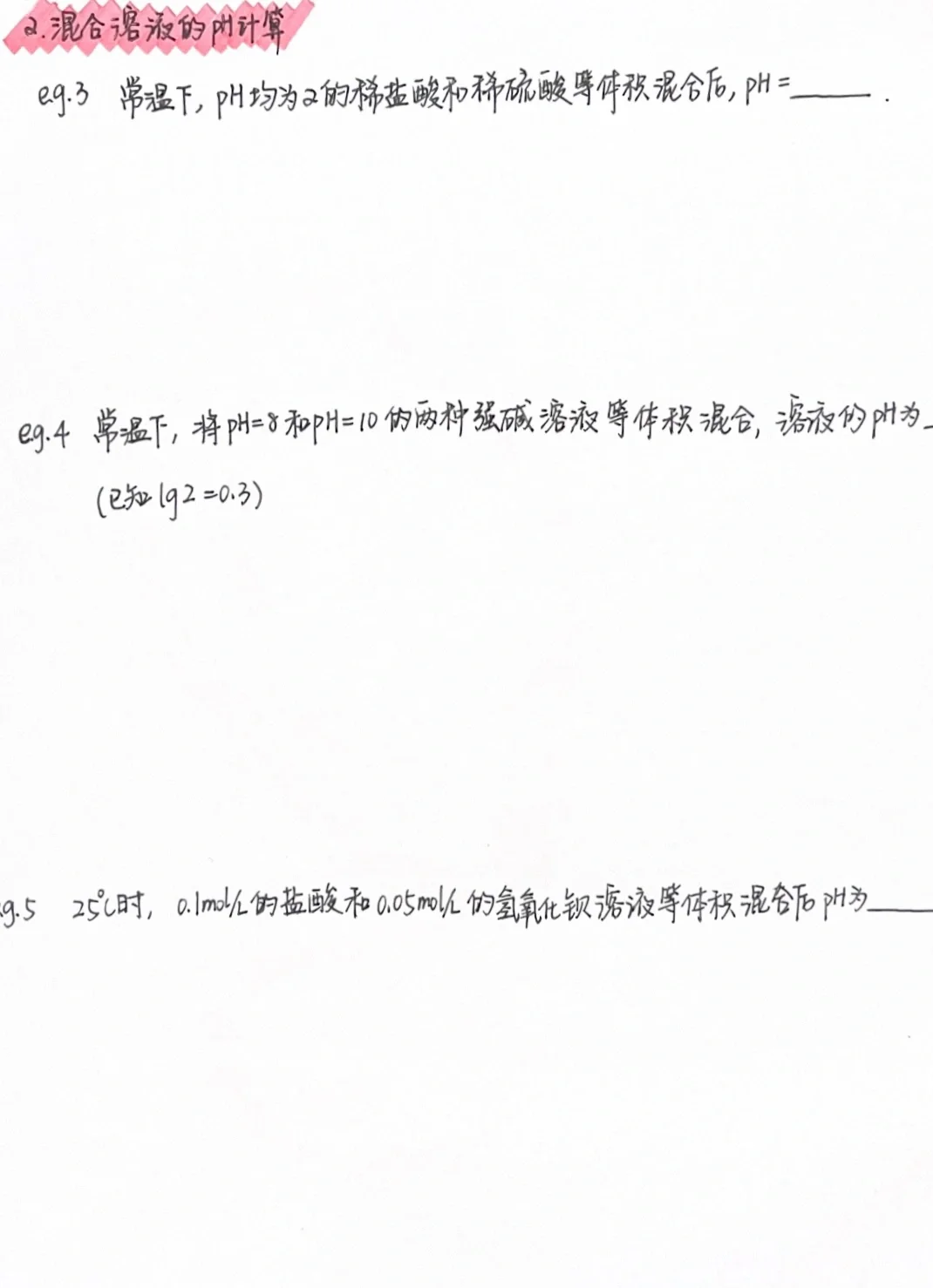 本次做例子的笔记:pH的计算的完整笔记和扣空版给大家放在最后啦!!