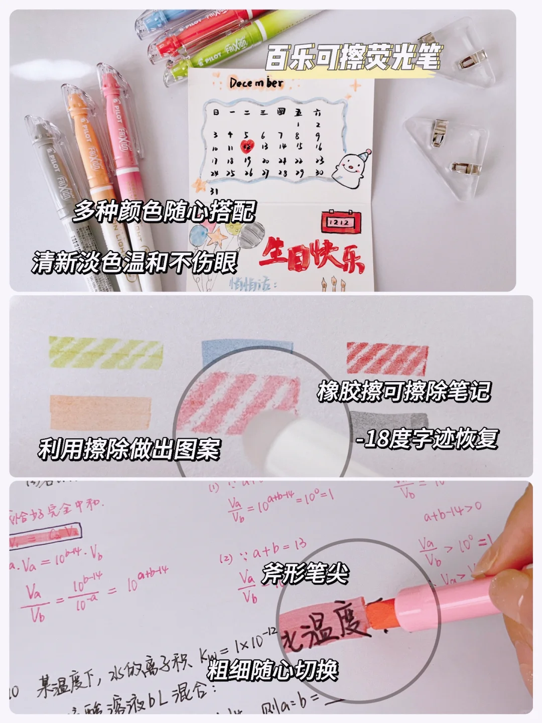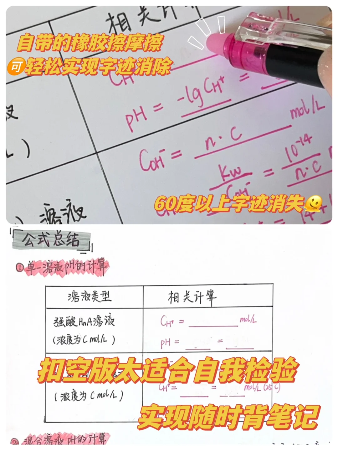 👩🔬很多宝子知道这个方法但却不好实现扣空这一步,其实我们借助一支笔🖊️🖊️就能可以完成这个方法了。本次笔记我用的是【百乐ST可擦笔】和【百乐可擦荧光笔】,采用温控墨水,🔥🔥60度以上自己就消失透明了🫥,自带的橡胶擦✏️可以摩擦生热完成字迹消失,纸面超级整洁,无碎屑(还可以省一个修正带的钱,哈哈哈)👍👍👍想要重点内容出现时可以把纸张放入冰箱字迹就回来啦(-18度字迹恢复)🧊🧊❄️