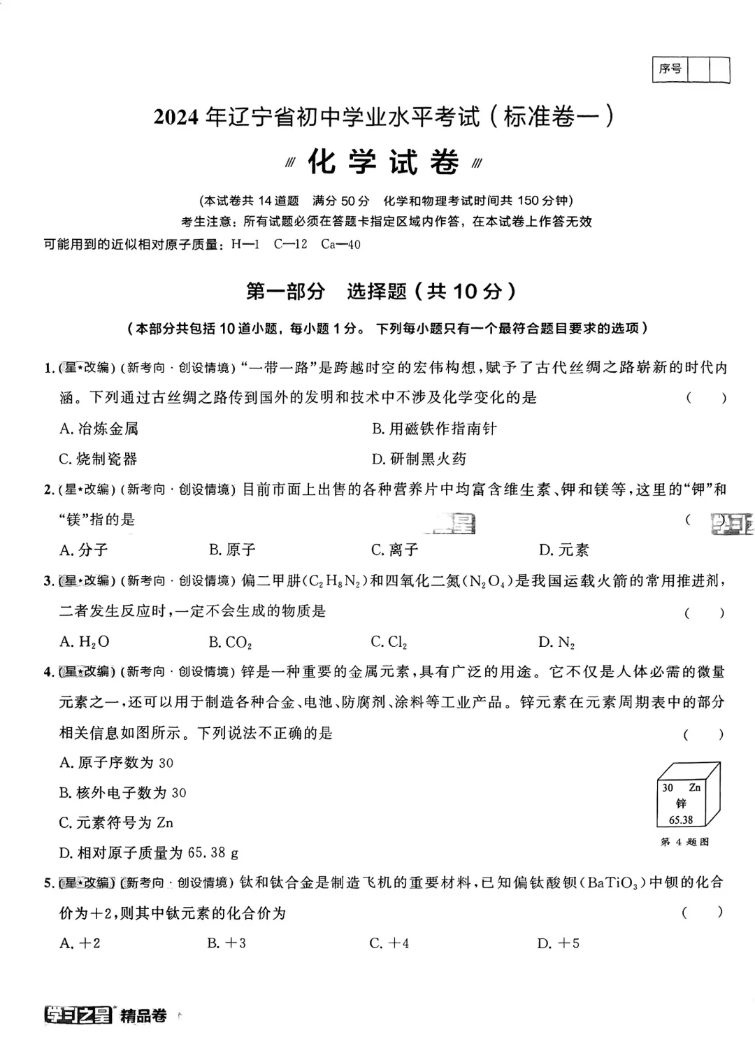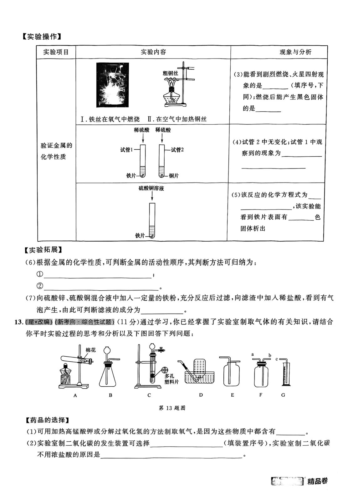 🧪💯本次选用的试卷为出版的2024中考系列的【必刷题】