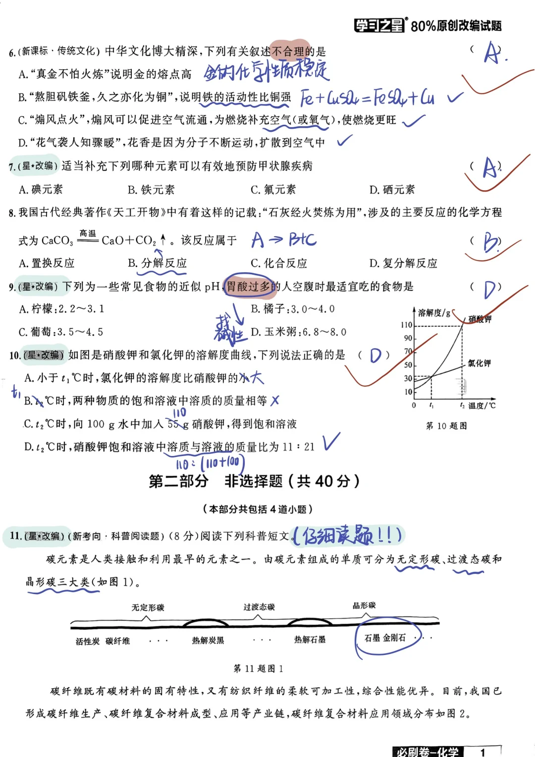 📝今日笔记是一套中考化学模拟卷,p1-p6是答案+解析分析🧐,p7-8是试卷介绍,p9-10是答题卡,p11-16是空白卷