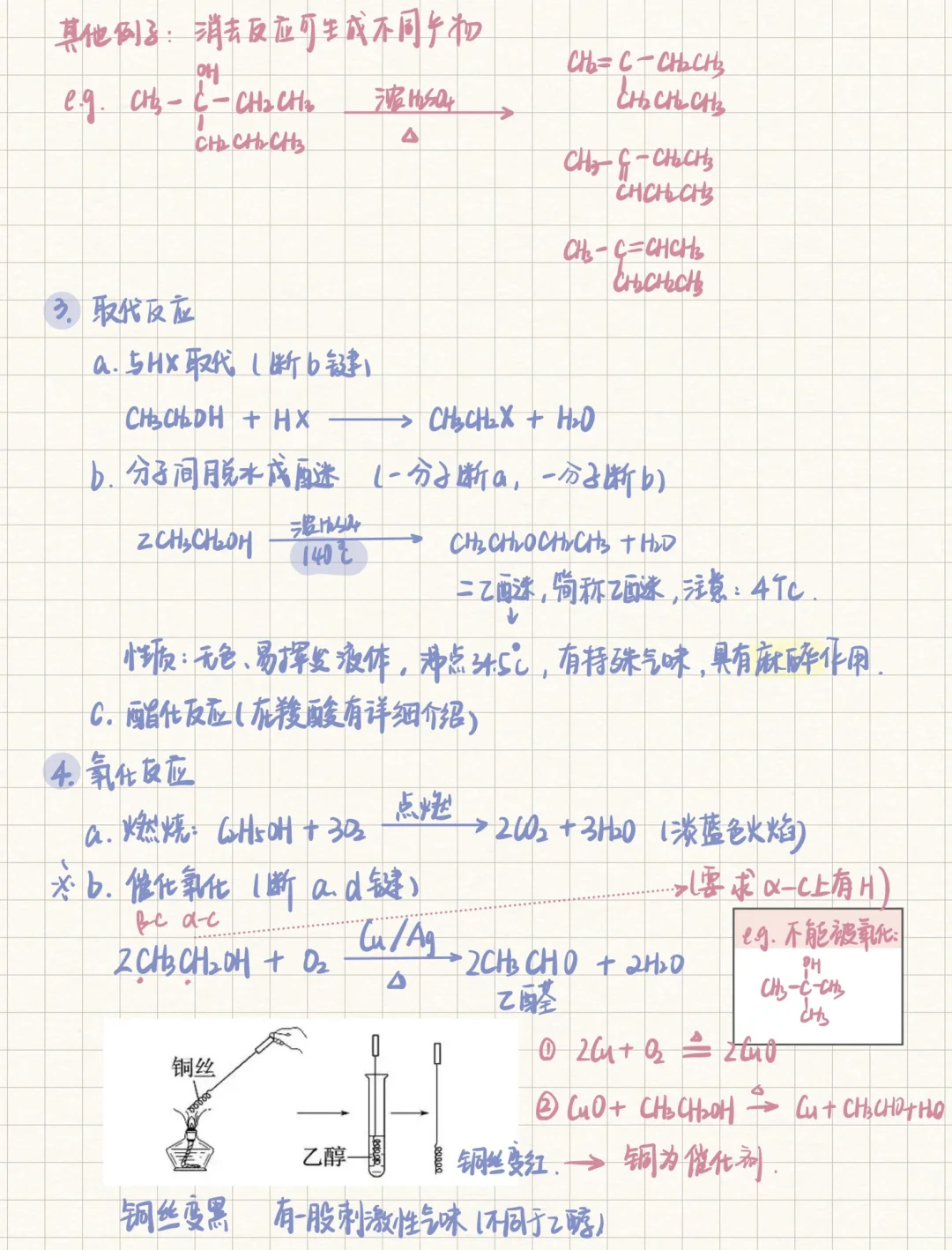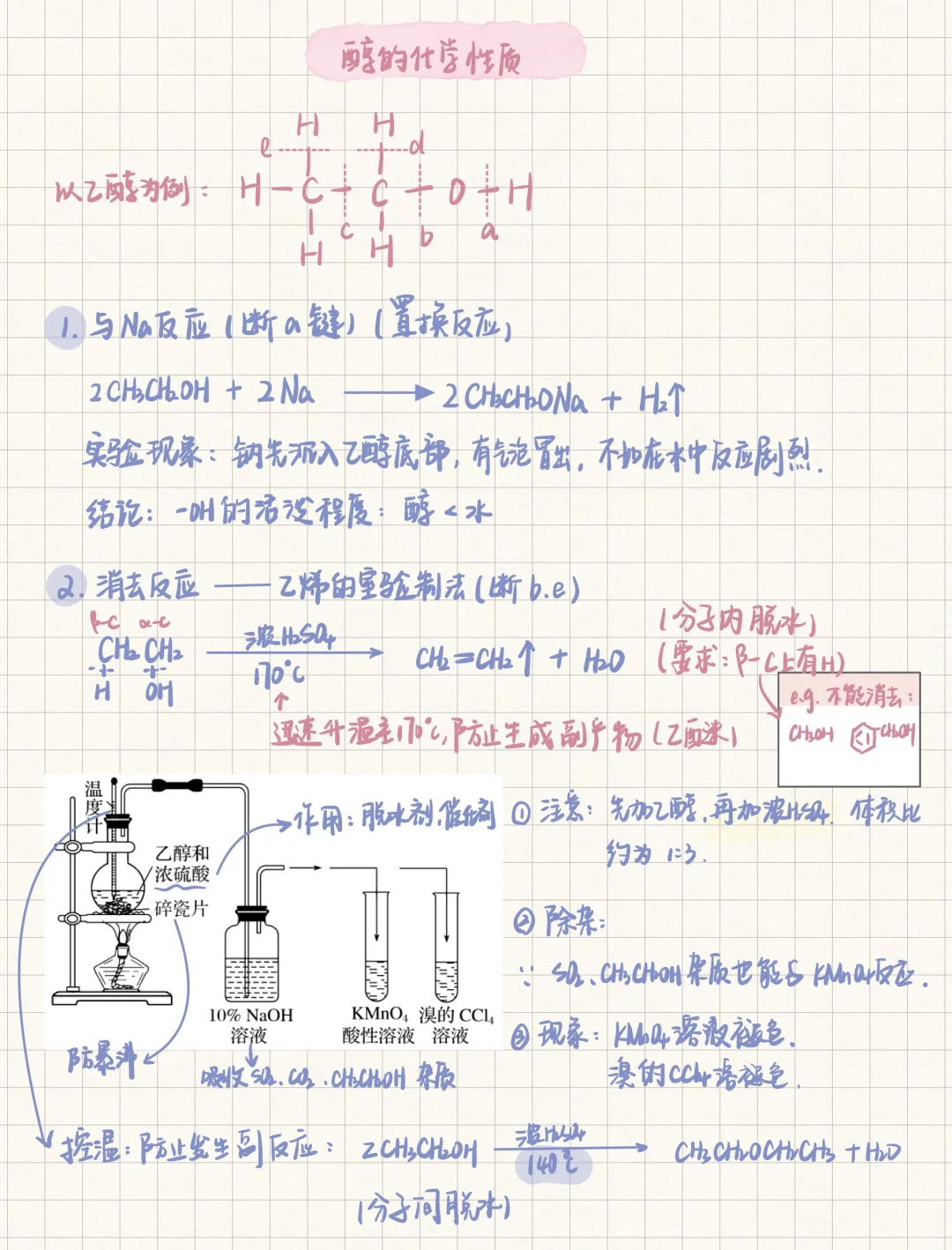 ⚠️本节课需要注意的是醇在不同化学反应中的断键位置,有没有反应限制🚫,带图的实验装置的作用,还是一些注意事项都是考点