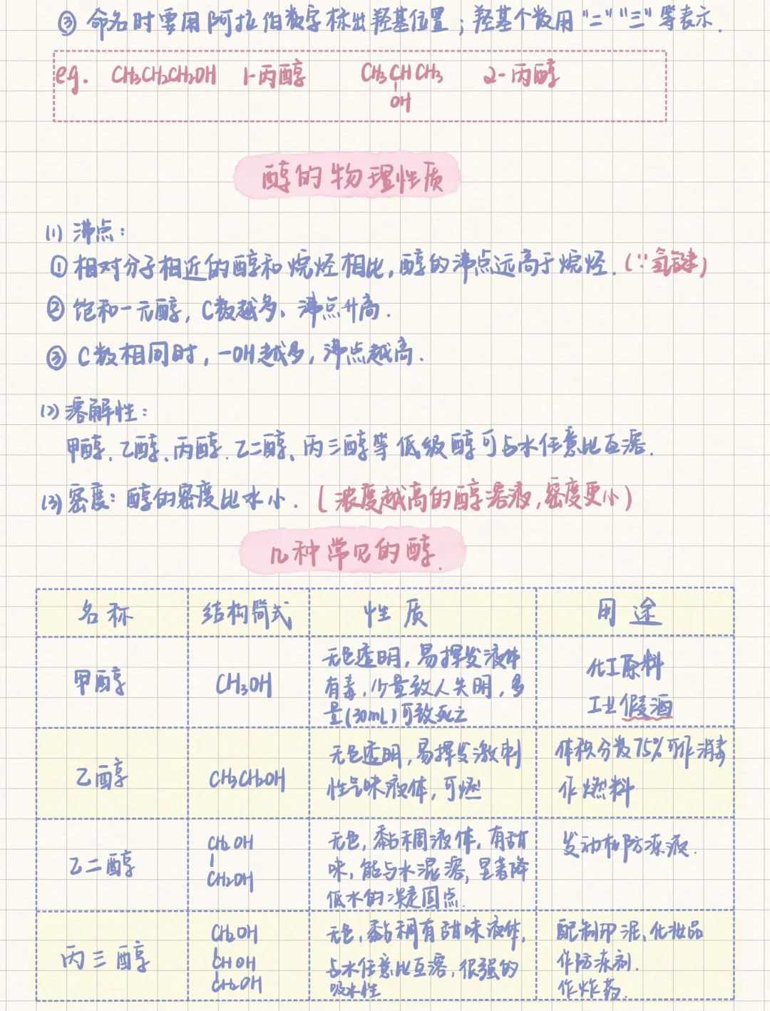 高二化学|选必三超全🫡笔记:醇的相关性质👍
