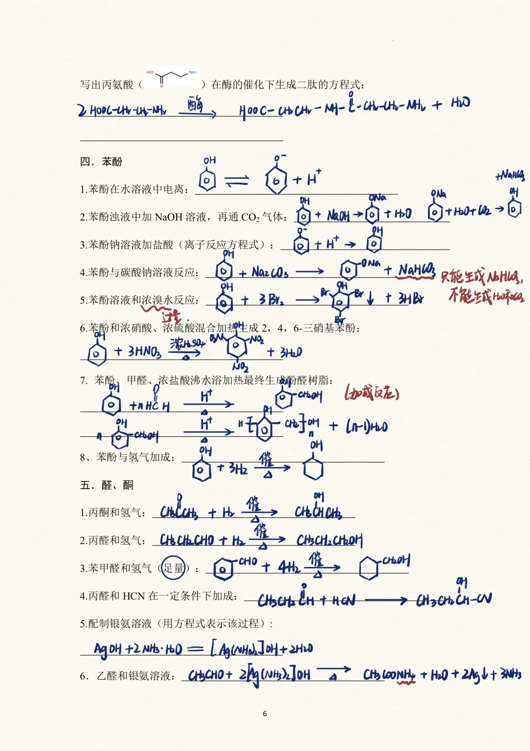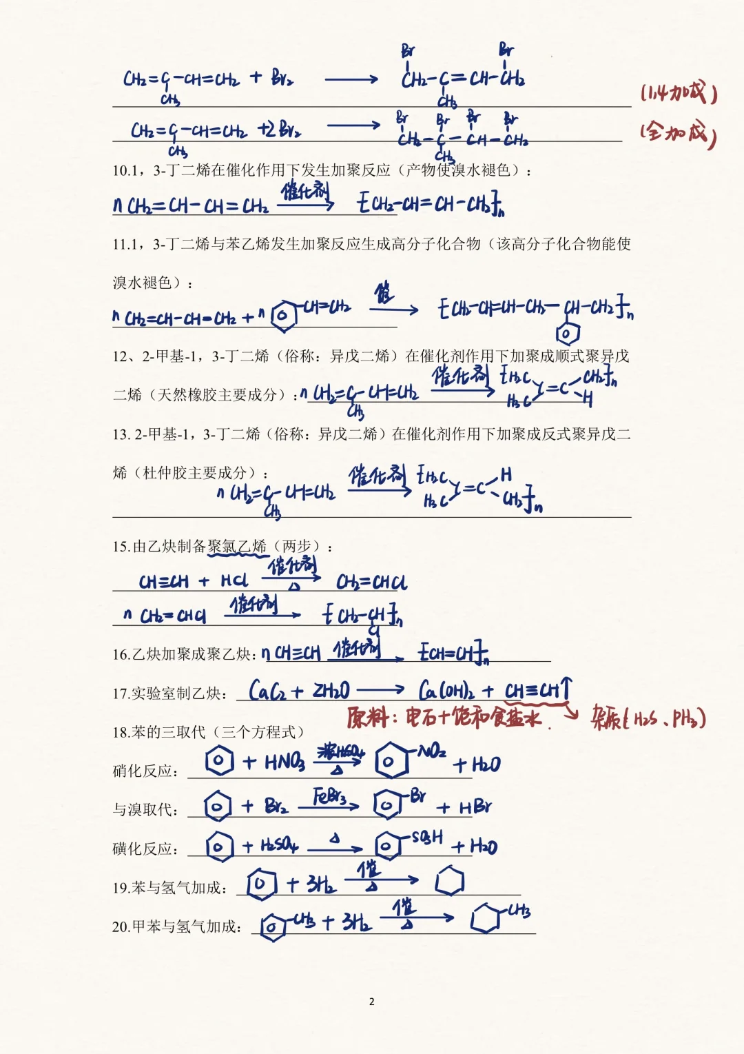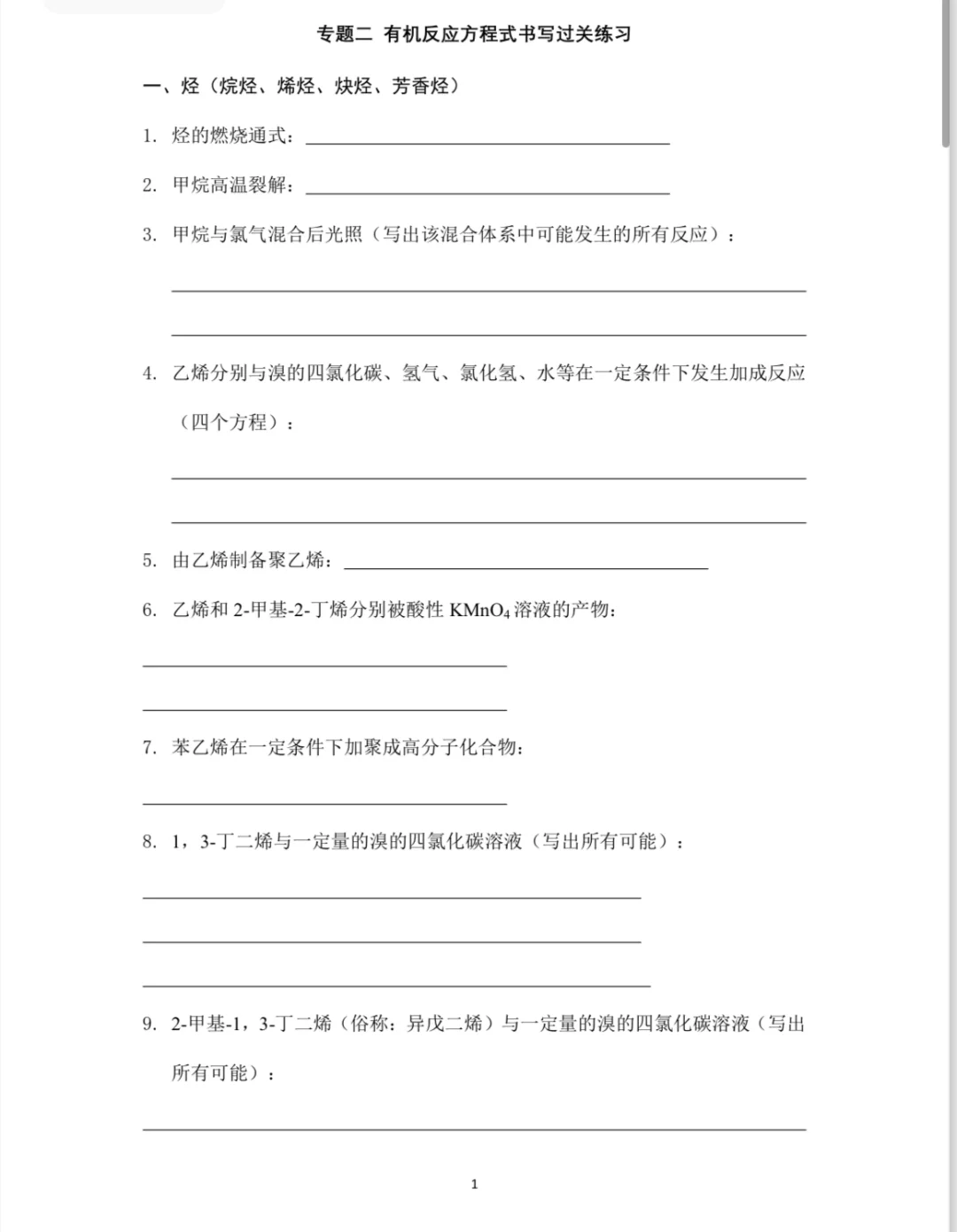 ✍️上个笔记📝是按照官能团、反应条件、反应类型来总结有机方程式,但是大家在做复杂物质的方程式时任然容易出错,所以这篇笔记是进阶版方程式的练习‼️有很多易错的“坑”,大家可以试试 💯答案在前面,空白自测版在后面