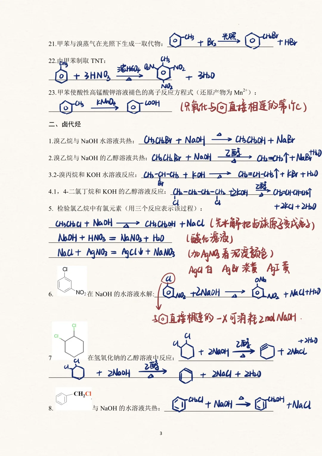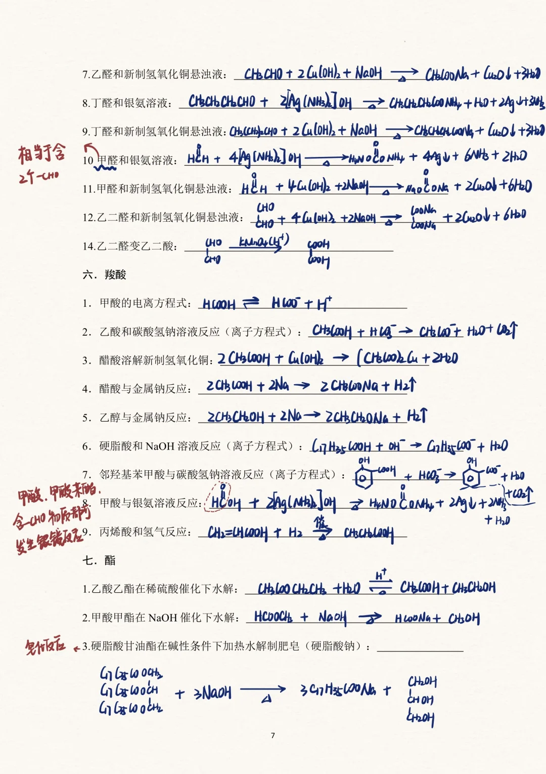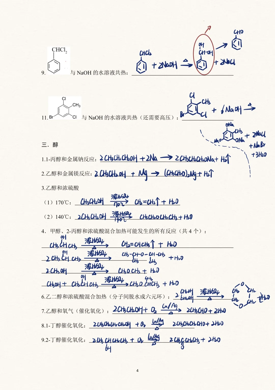 ✍️上个笔记📝是按照官能团、反应条件、反应类型来总结有机方程式,但是大家在做复杂物质的方程式时任然容易出错,所以这篇笔记是进阶版方程式的练习‼️有很多易错的“坑”,大家可以试试 💯答案在前面,空白自测版在后面