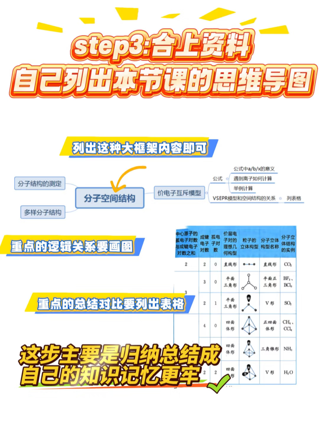 Step3️⃣:前两步你只是看了,并没有自己的总结,所以想要记忆深刻,希望能拿一张白纸,给自己整理一份思维导图,这个图不需要太复杂,就想象你是老师,你会用什么样的顺序给学生讲课,写板书时会有什么逻辑,在脑中形成一个知识脉络