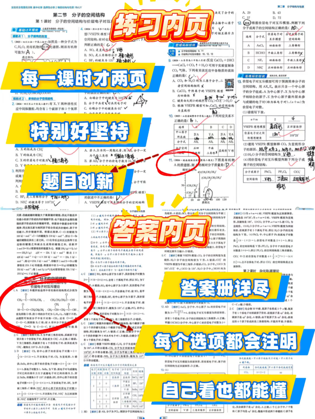 图中是以人教版选择性必修二教材第二章第二节(分子的空间结构)为例,给大家做了图文演示,想要图片涉及到的笔记、练习、答案请告诉我。