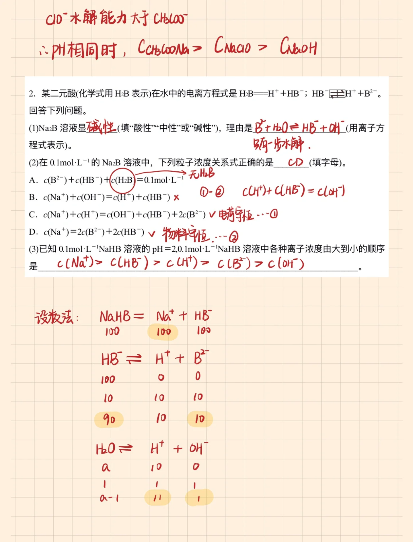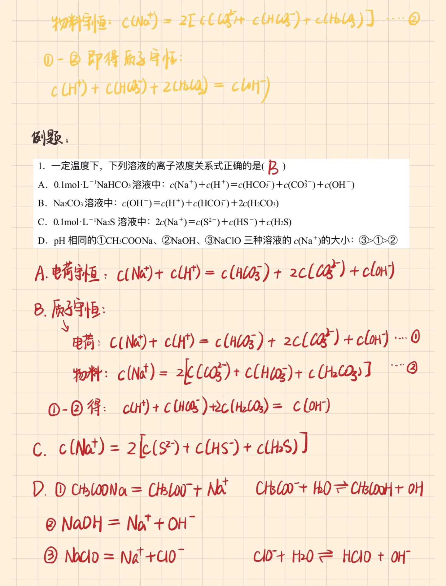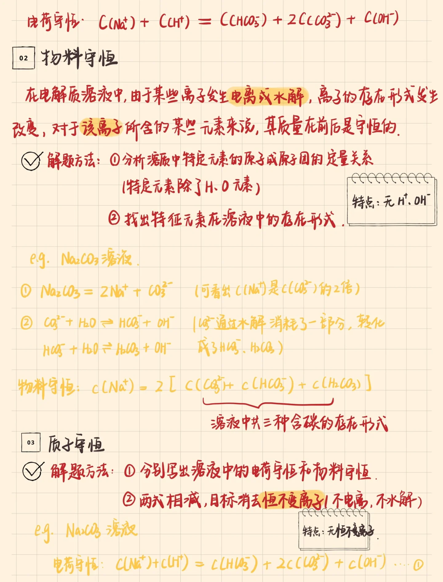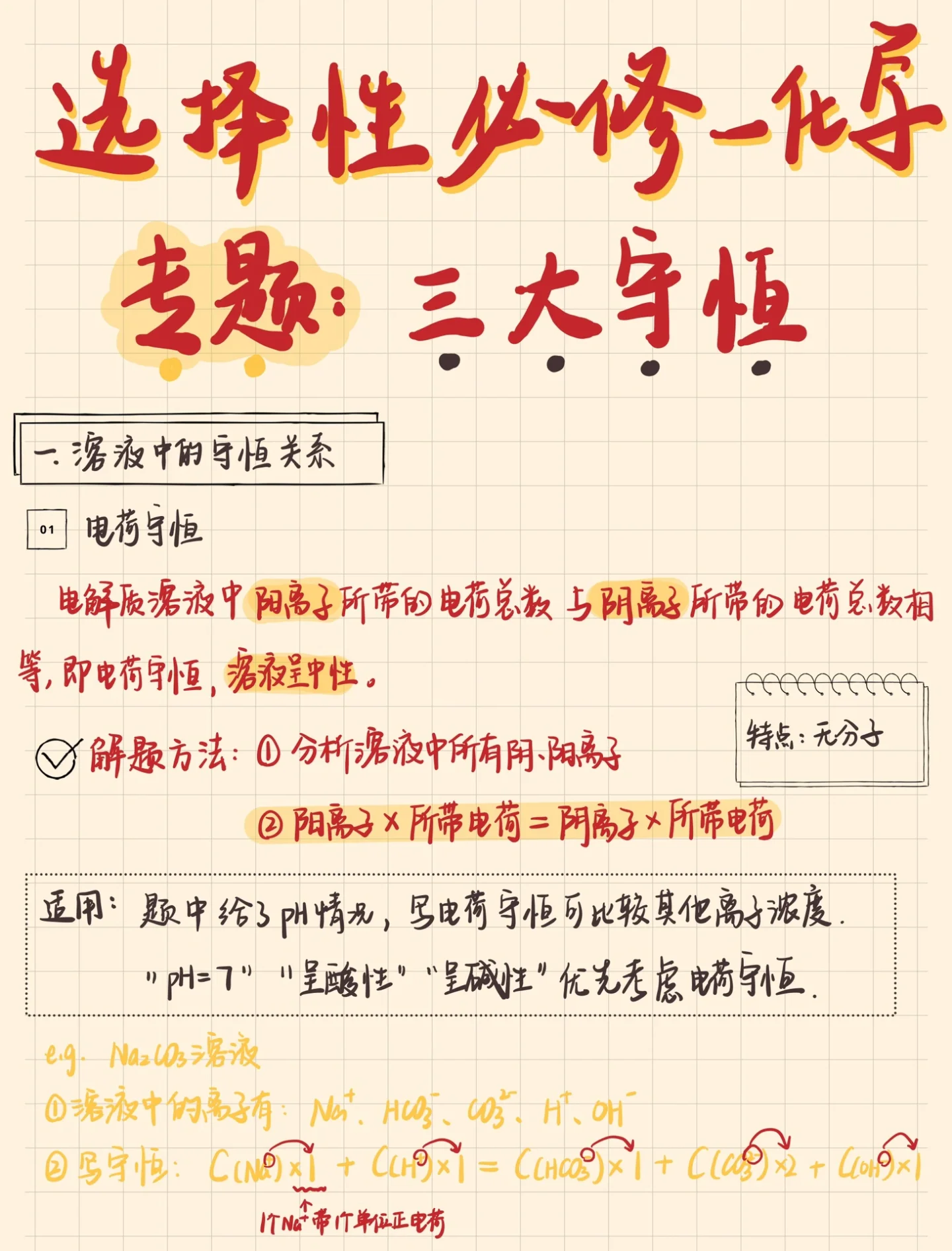 高二化学|专题👏溶液中三大守恒笔记+例题‼️