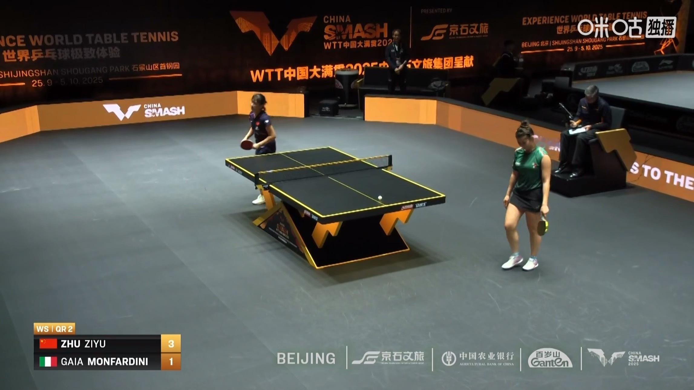朱梓予3比1蒙法蒂尼(7-11,11-6,12-10,11-4)晋级女单资格赛决