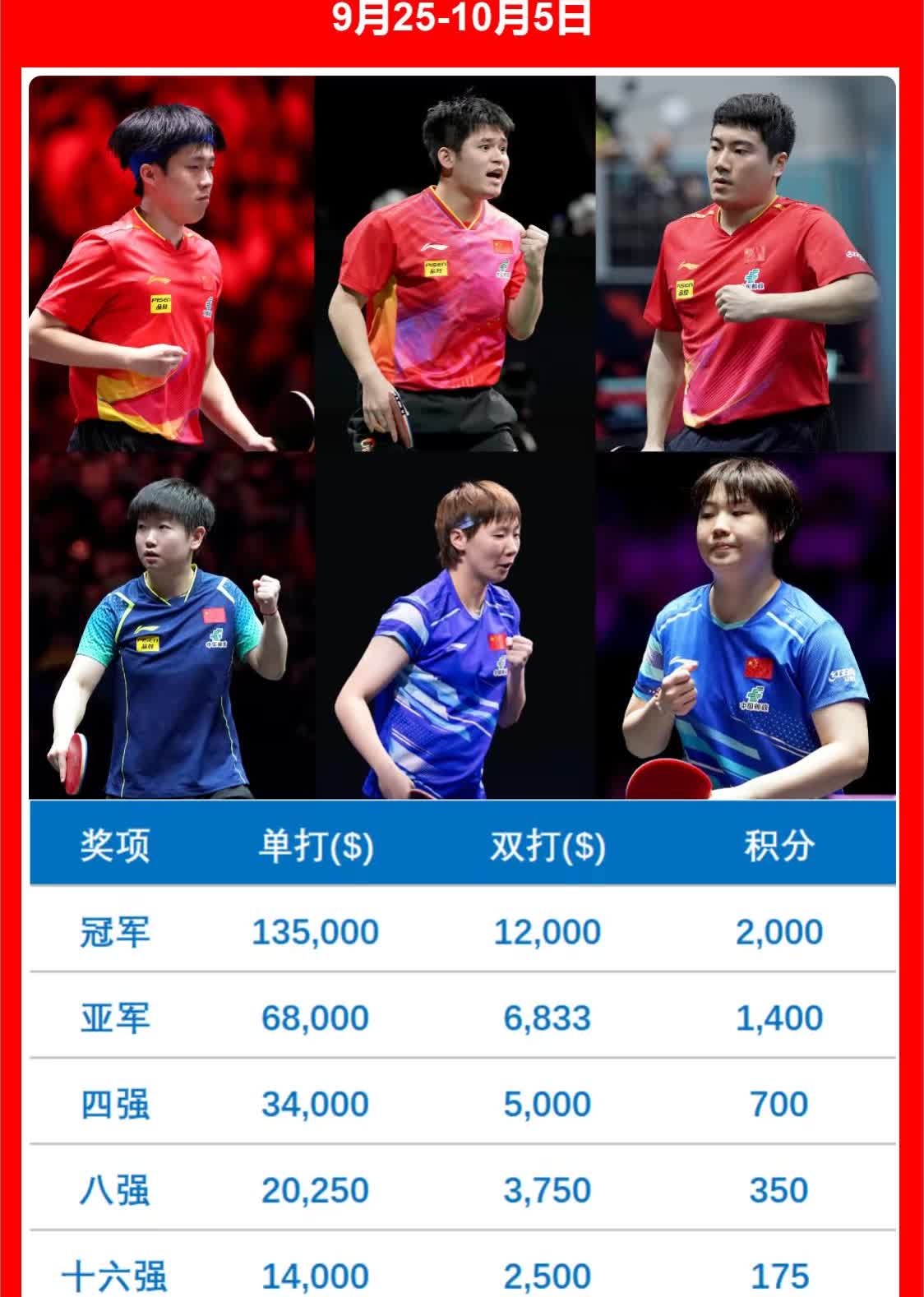 双打摆lan不是没有原因的! 看这奖金对比,是不是觉得差距大的更直观了![捂脸] 双打吭哧吭哧拿到冠军才1.2万美金,两个人分一人6000美金,还不如单打二轮游(9000美金),亚军6833,分一半就3416.5美金。 单打一轮游都有5000美金,还有单打64强=双打4强的奖金(5000美金)。 不过提高双打奖金的建议,也不算白提,至少从8000提高到了120000美金,但是单打奖金就提的更高了,一下从10提到了13.5W。 这巨大的悬殊(差了10倍),扛着为国争光的压力,拿着卖破烂的钱,也难怪都想卷单打了!就这种亏本的项目,你开公司你愿意接吗?[笑哭] 球迷们也别怪打双打项目的时候,有些人摆lan了,只能说不摆lan的人,真真是责任心太强,为爱发电了![捂脸] 去年北京大满贯,5个项目咱们是包揽了冠军,今年就看能不能保住这个成绩了![奋斗][奋斗][奋斗]
