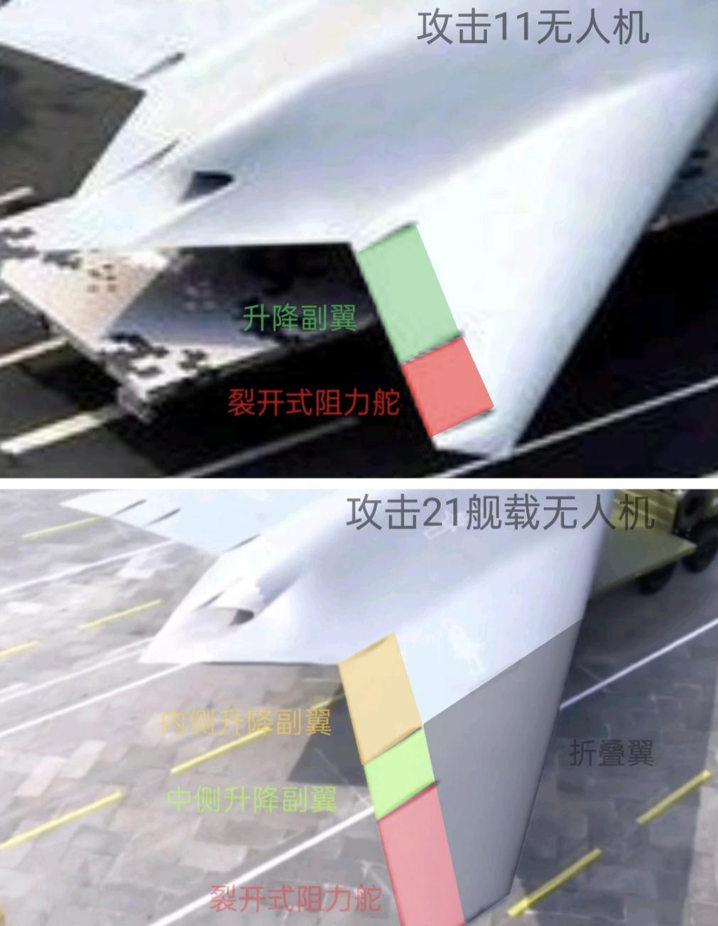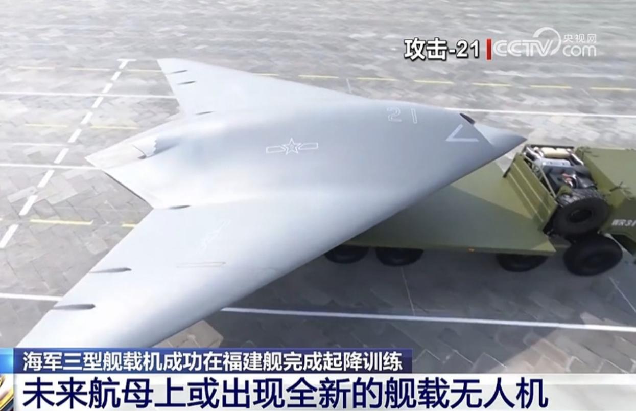都猜错了,不是攻击-11,而是攻击-21。 九三阅兵上就亮相了,包括专家和资深军迷,没有一个猜对的。 当时,他们还以为是攻击-11的海军版。 现在看来,海军版是没错,但不是攻击-11H,而是更先进的攻击-21。 而且,军迷也是后知后觉,才知道攻击-21机翼上的那条线,不是简单的涂装,而是折叠翼。 基本可以确定,076的电磁弹射,主要弹射的就是攻击-21。