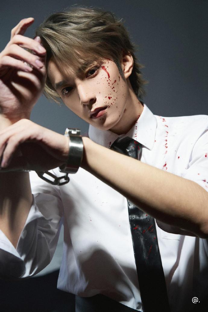 刘耀文试图挽回形象刘耀文血溅妆暗红颜料勾勒出不羁感,眉骨处的血溅细节超加分,眼
