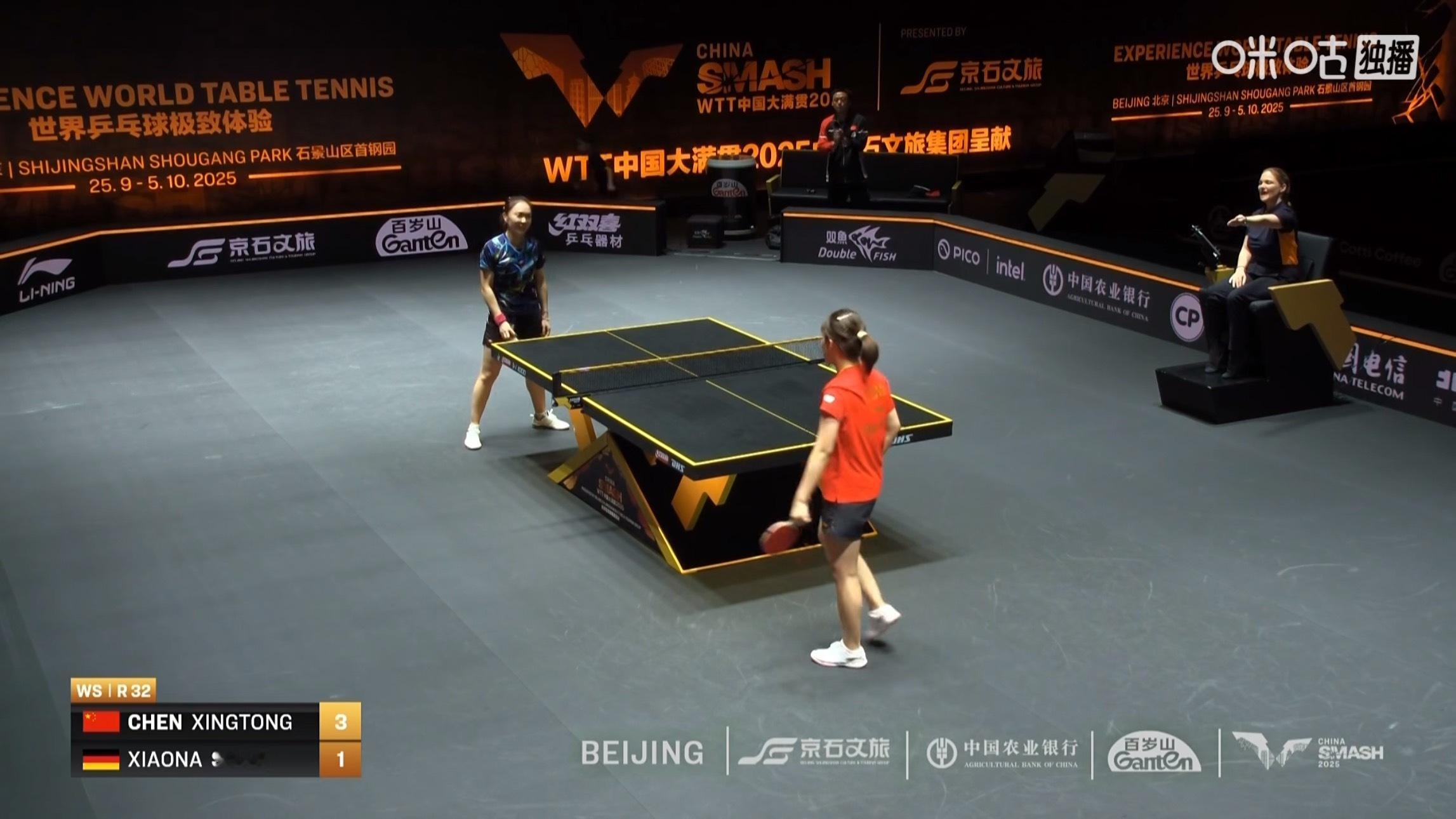 陈幸同3比1单晓娜(11-6,11-3,7-11,11-8)晋级女单16强WTT