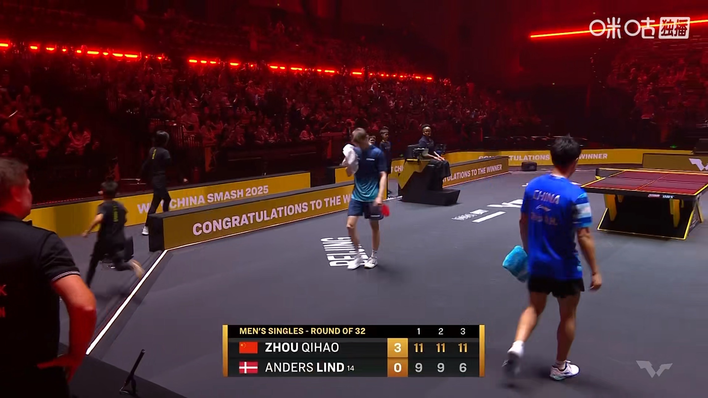 周启豪3比0林德(11-9,11-9,11-6)晋级男单16强WTT中国大满贯2