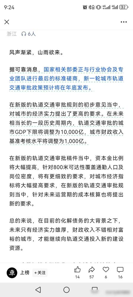 网传最近地铁申报标准再提高,已经上车的城市、条件不错的可以继续申报,没有上车的城市想挤进去难度太大了。别的不说,就网传初次申报要GDP1万亿、财政收入1000亿这两条,全国能达标的城市一只手数得过来——2022年GDP破万亿的城市才24个,其中一般公共预算收入超千亿的更少,深圳、上海、北京这些头部城市都算上,可能也就十多个。 这次调整还有个关键点:地铁公司的资本金比例要大幅提高,市财政得真金白银投钱,不能再靠贷款或者“画饼”模式了。以前有些城市建地铁,资本金里贷款占比高,后期还款压力大,现在要求更实诚,也是为了防风险。另外,800米覆盖范围内的通勤人口、岗位密度,还有地铁自身的运营盈利能力,都成了硬指标——自己能造血,才能继续申请下一期线路。 想起洛阳,当年抓住机会批了2条地铁线,让不少城市眼红。可现在二期申报,按网传新标准,估计得熬一阵子。其实洛阳可以试试用轻轨延长一二号线,成本低、审批相对松,说不定能补上地铁覆盖的“最后一公里”。 注:文中网传地铁申报标准调整信息参考近期网络公开讨论。