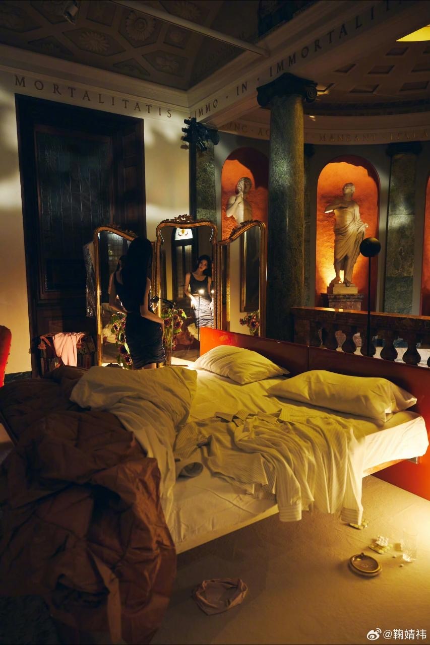鞠婧祎米兰时装周酒店照闹大了!9月27日平台发出照片,起初床上有男士衬衫和贴身衣