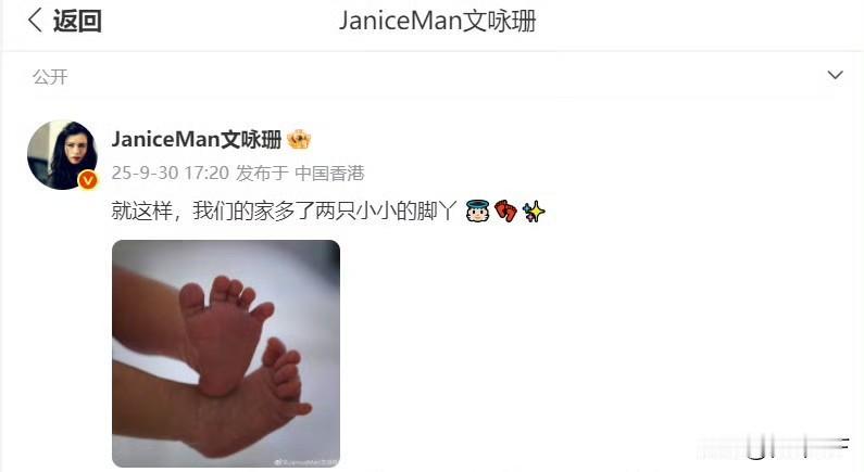 36岁的文咏珊晒孩子的脚丫官宣生娃,很多人好奇她是怎么做到跳过官宣怀孕直接官宣生