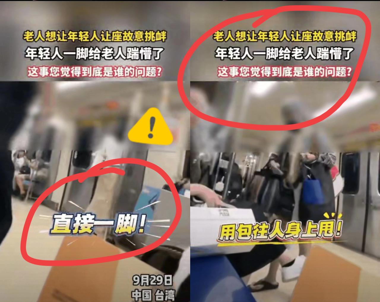 不忍了!中国台湾某列车上,一位七旬的老太要求女子让座没有得逞,竟然用包往女子身上甩打,这老太哪是要座位,分明是 把“尊老”当特权耍,难怪被网友扒出早有逼孕妇让座的前科。 更讽刺的是,北捷刚把“博爱座”改成“优先席”,想消解对立,结果照样闹成“搏击座”。这哪是座位的问题?是有人把善意当义务,把蛮横当资本。 年轻人反击虽解气,但落个“互殴”罚款的结局,其实双方都是输家。 精神科医师说这是世代矛盾,我看更像“规则被架空”——优先席本是给真有需要的人,却成了某些人的“霸权座”。 比起骂年轻人冲动、怪老人霸道,不如想想怎么让善意不被绑架。​ 各位读者你们怎么看?欢迎在评论区讨论。