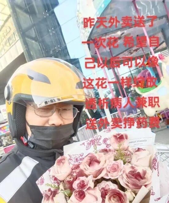 身患尿毒症,37岁西安男子日跑外卖50单续命,与死神赛跑。每个月刨除医保报销的部分,每月需要3000多的医疗费用,上班没有公司要,不得已只能跑外卖。 男子姓高,2024年被查出患尿毒症,需要每周做三次透析,说白点就是需要清洗血液,以往身体里这个活是有肾来干,肾坏了不工作,就只能靠透析机体外进行清洗。很多这样的病人都是靠这个活着,很悲催,但是没办法。 高某家庭条件非常普通,父母是农民,无能为力,家里两个孩子,一个读幼儿园,一个读小学,老婆打零工,如果失去他这个劳动力,家里可能面临揭不开锅。高某虽然身体很累,爬楼梯都腰酸吃力,但是为了减轻家庭负担,为自己续命,咬牙坚持送外卖,这是对他来说来钱最快的途径了。 身体舒服的时候,就多跑几单,不舒服的时候就减少单量,每周还要跑两到三次医院做透析,外卖对于高某来说是自由度高,还能挣到一点钱最好的工作了。 他把自己的视频发到了网上,他的坚强感动的很多网友,也触动了很多有类似经历网友的情绪,同病相怜,同是天涯沦落人,痛并顽强地活着,虽然看不到希望,但是想到还有可以牵挂的人,也一定要为他们多活一天。 最后说一句无力苍白的话吧,祝高某身体健康,也许上天眷顾能换肾呢。