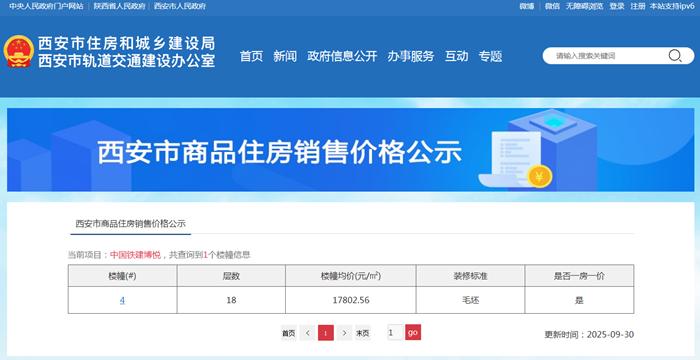 最新!刚刚,西安住建局官网公示了浐灞国际港奥北板块“中国铁建·花语博悦项目”新一批房源的价格! 中国铁建·花语博悦项目位于西安市浐灞国际港林溪路以南、林泽路以北、奥体大道以东,总占地面积约45.676亩,容积率2.5,绿化率35%,规划9栋高层、小高层住宅,是中铁建房地产在港务区第四个项目。 项目占据奥体2.0核芯,12家央企区域总部汇集,五大名校IP+交大一附院陆港医院构筑黄金“15分钟生活圈”,拥有“交大名校+双地铁+百亩公园”的强势配套,自身配套有1800㎡商业、内部打造部分架空层;距西安地铁10号线西堡站约900米,向南约1.5公里可达地铁3号线保税区站,一墙之隔就是今年开学的交大附中陆港第四学校! 本次价格公示,推售 4