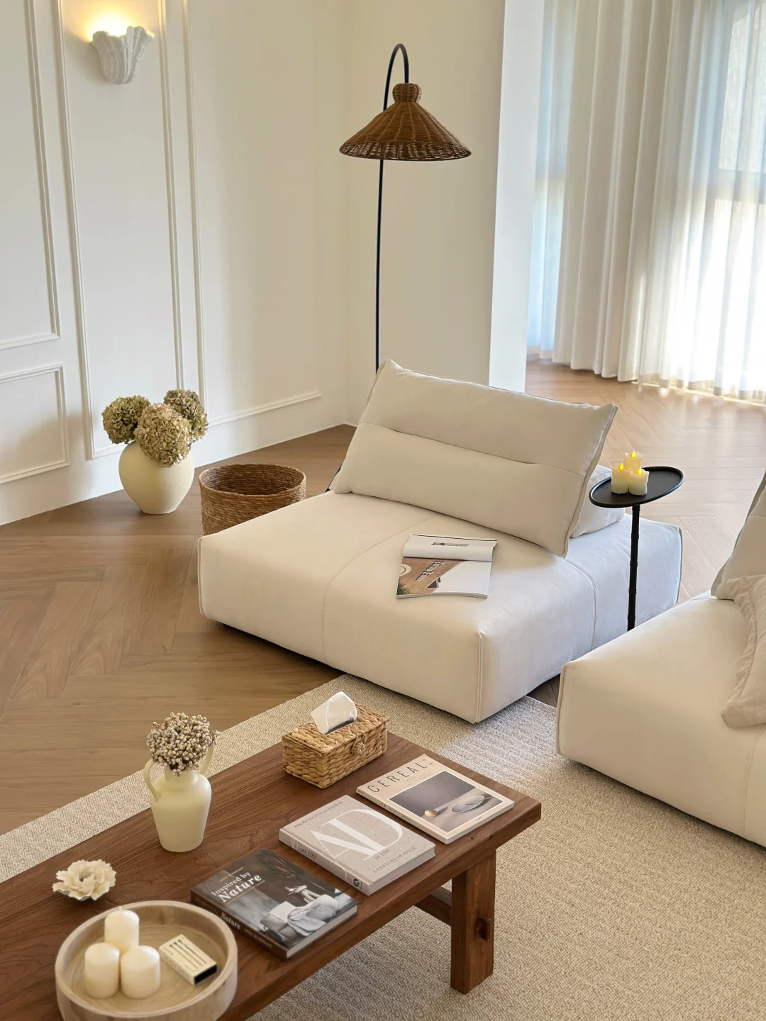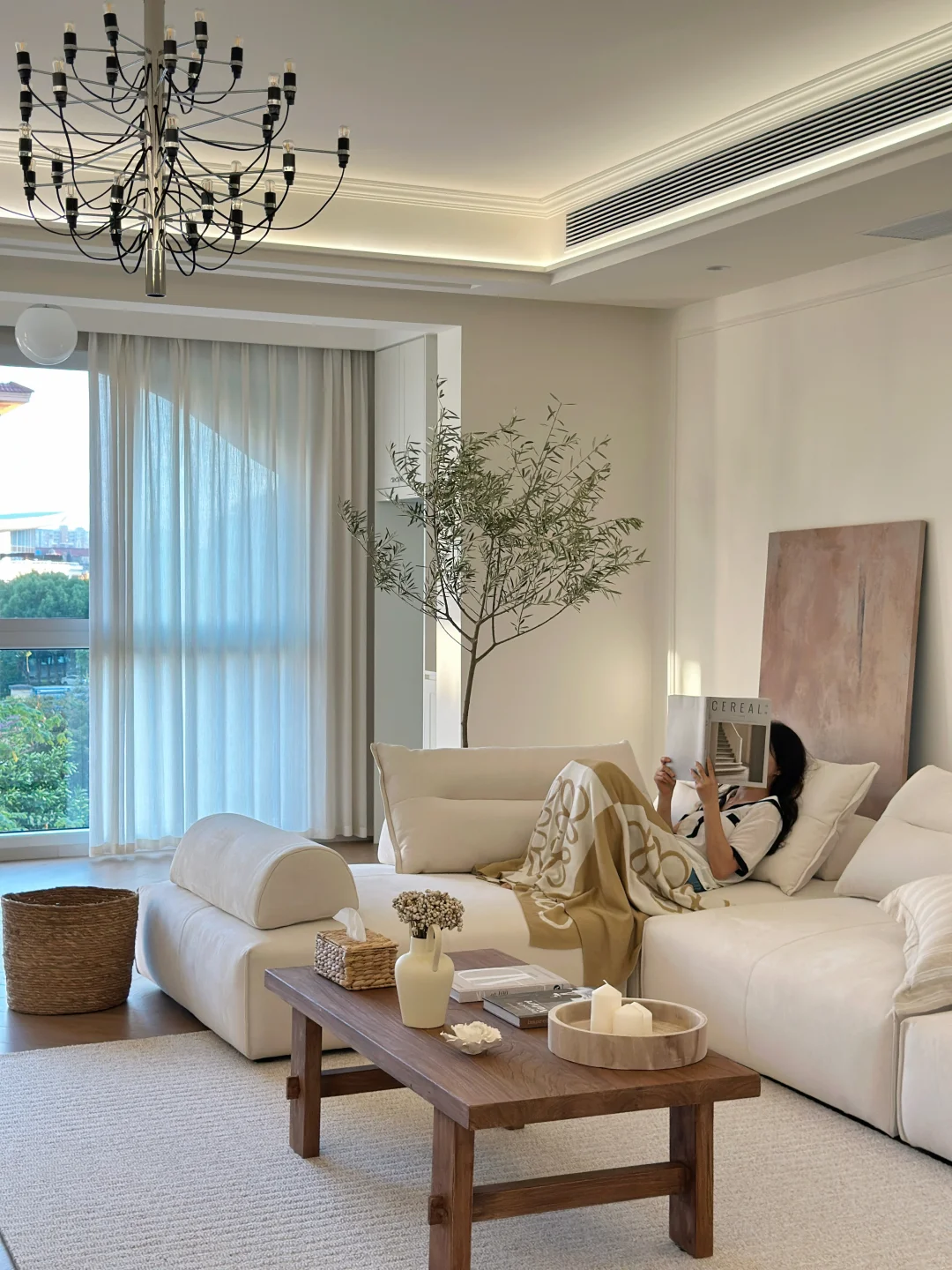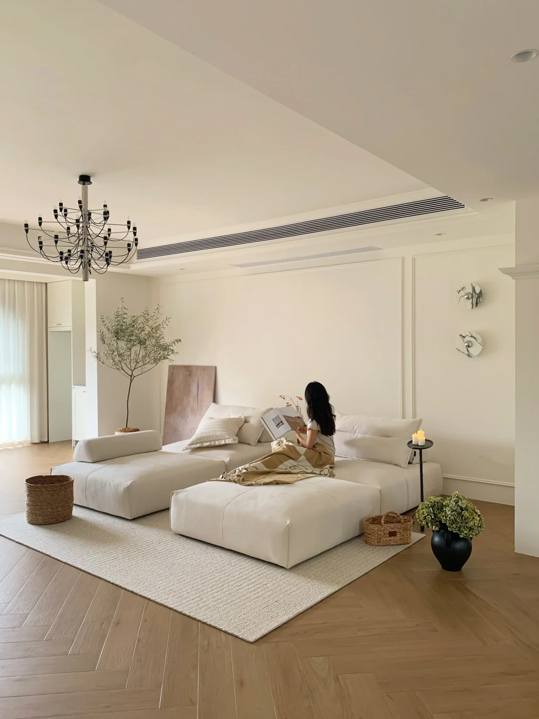 它不再是传统的“坐着”的沙发。4个1.2米见方的模块,被我拼成了一个超宽敞的“躺平区”。我可以随心所欲地伸直腿,整个人陷进去。拿一本买了很久却没时间翻的书,或者干脆闭上眼睛听首歌。在这里,我不是妈妈,不是妻子,只是彻底放松的自己。