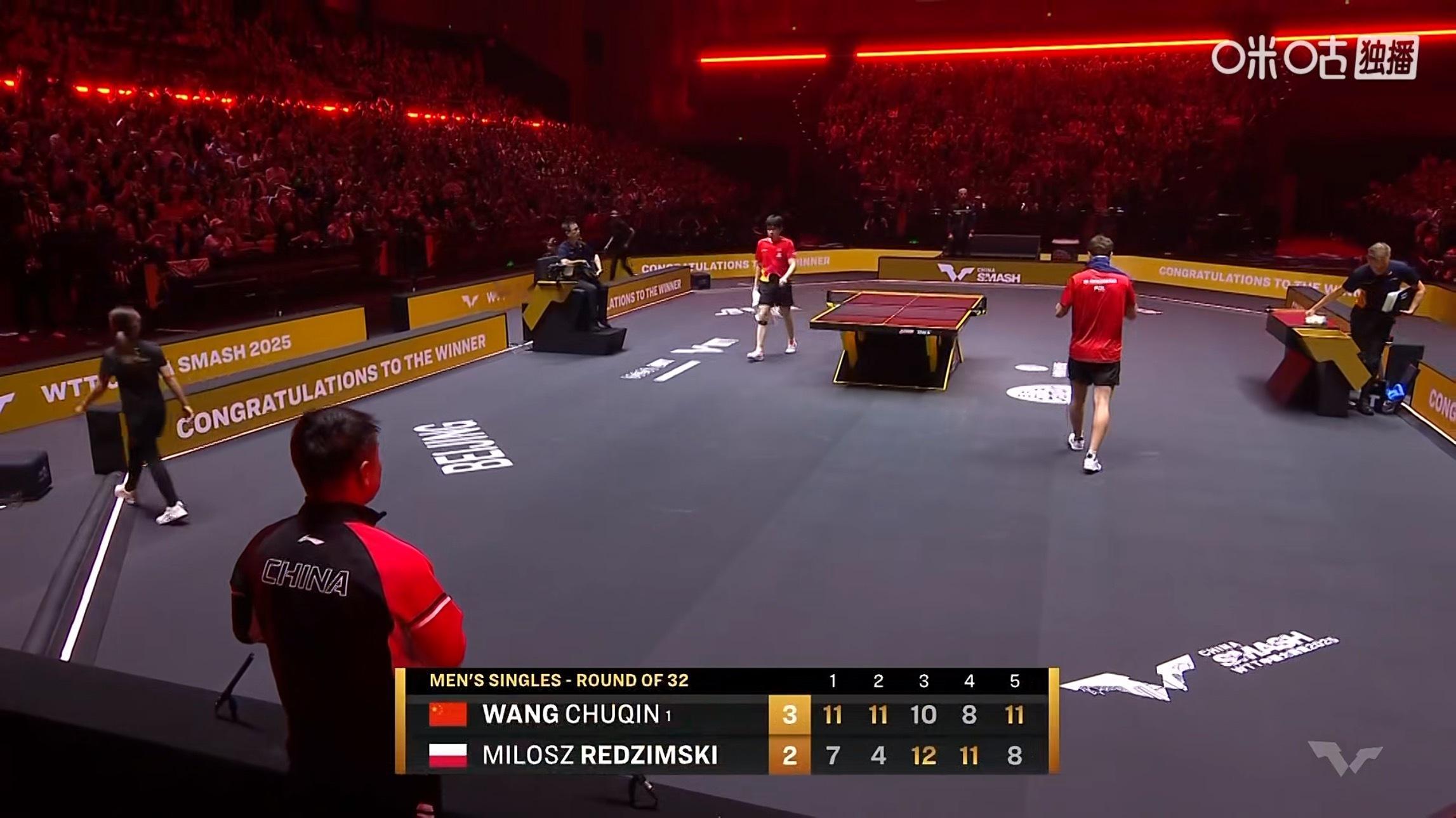 王楚钦3比2雷德齐姆斯基