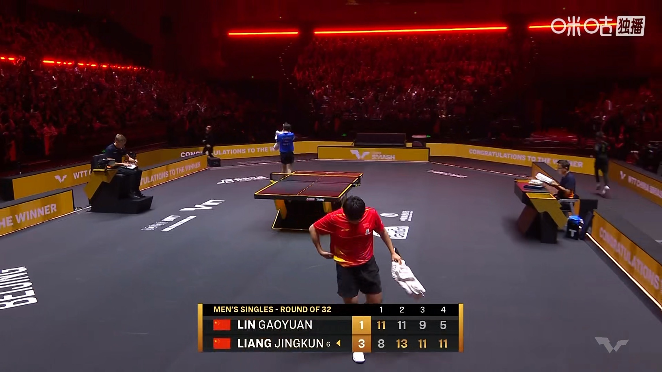 梁靖崑3比1林高远(8-11,13-11,11-9,11-5)晋级男单16强WT