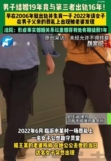 “藏了16年还是露馅了!”2022年6月,山东临沂一女子在公公葬礼上,发现有个陌生女子披麻戴孝,以“儿媳”身份守灵,她心里咯噔一下,她惊讶的发现,跟她结婚19年的丈夫,竟然出轨16年,还生了个私生子,更以跑“长途货运”为名不回家,跟第三者同居,女子愤怒的把丈夫告上法庭,第三者却狡辩:我们就是搭帮过日子,没领证,不算重婚。法院的判决出乎意料。 山东临沂的天气已经有些闷热,一场肃穆的葬礼正在这里举行。尚某穿着孝服,忙前忙后地招呼着前来吊唁的亲友,心里满是对公公离世的悲痛。 可就在她转身去给灵前添香时,眼角的余光瞥见了一个陌生女人——对方同样穿着孝服,正跪在灵前烧纸,身边站着的,竟然是自己结婚19年的丈夫王某。 那一刻,尚某感觉浑身的血液都冻住了,心里“咯噔”一下,手里的纸钱都差点掉在地上。她愣愣地看着那个女人,看着丈夫和她并肩而立,接受亲友的安慰,那画面刺眼得让她几乎喘不过气。 后来她才知道,这个叫温某的女人,已经跟丈夫在一起16年,甚至还生了一个孩子。 这些年,王某总说自己跑“长途货运”,经常十天半个月不回家,尚某体谅他工作辛苦,家里的大小事从不让他操心,可她怎么也没想到,丈夫口中的“辛苦”,竟是在外面维系另一个“家”。 葬礼本是家族团聚、确认秩序的场合,温某穿着孝服以“儿媳”身份守灵,明摆着是想借着这个特殊的日子,把这段见不得光的关系摆到台面上。 尚某越想越气,这么多年的信任和付出,原来都是一场骗局。她没有在葬礼上闹得不可开交,而是在事后收集了证据,果断把丈夫告上了法庭。 可让她没想到的是,温某竟然站出来狡辩,说自己和王某只是“搭帮过日子”,没领结婚证,不算重婚,言外之意就是法律管不着他们。 这话听着好像有点道理,不少人也觉得只要没领证,就不算真的结婚,但法院可没这么认定。 办案人员去王某和温某住的地方调查,邻居们都说两人平时就像正经夫妻一样,一起买菜做饭,接送孩子上学,周围人都以为他们是一家人。 物流园的监控也拍下了两人经常一起进出的画面,甚至在温某去医院看病时,王某还以“丈夫”的身份签了字。 这些证据摆到法官面前,结论就很明确了。我国法律里的重婚,可不只是看有没有结婚证,只要有配偶的人,还跟别人以夫妻名义长期稳定地生活在一起,就算事实婚姻,一样构成重婚罪。 不管王某和温某怎么辩解,法院最终还是判了王某一年有期徒刑。 听到判决结果时,尚某心里五味杂陈。一年的刑期,对王某来说可能只是短暂的惩戒,可对尚某而言,被偷走的16年青春,被践踏的19年婚姻,又该怎么弥补呢? 网上很多人都说“这样的犯罪成本太低了”,其实也不是没道理,毕竟有些伤害,不是靠刑期就能抹平的。 不过好在,法律还给了尚某维权的机会。刑事判决结束后,她还可以提起离婚诉讼,作为没有过错的一方,她能要求损害赔偿,分割财产时也能得到照顾,甚至王某这些年给温某花的钱,她也有权要回来。 可就算钱能要回来,心里的伤疤也很难愈合,这个破碎的家,还有两个无辜的孩子,未来都要带着这场风波的阴影继续生活。 说到底,婚姻从来都不是一张纸那么简单,它背后藏着责任和忠诚。王某以为自己能把两个家平衡好,以为没领证就能钻法律的空子,可最终还是自食恶果。