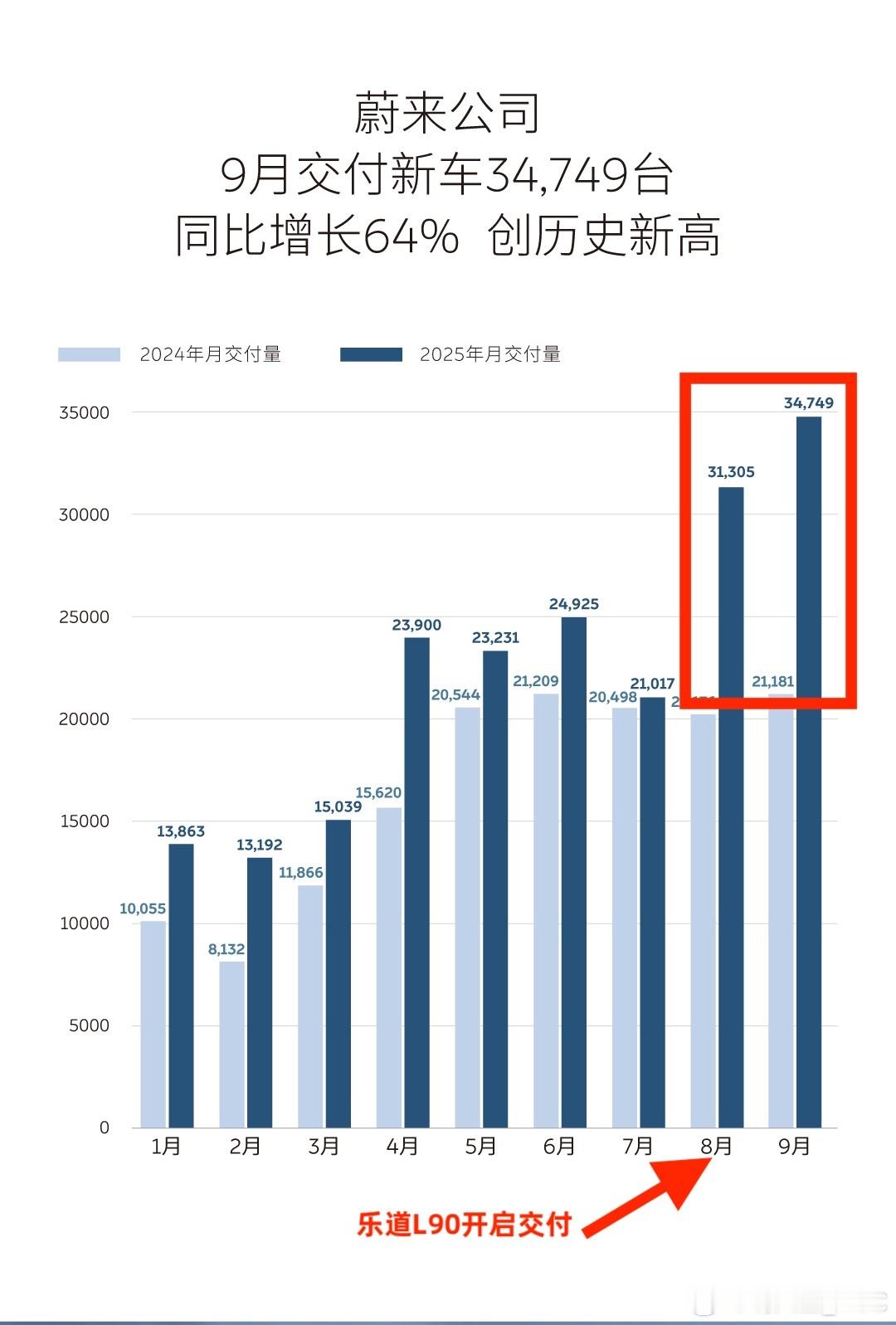 乐道汽车9月交付15,246台,占蔚来整体44%。L90连续两月破万