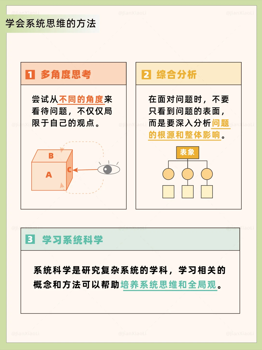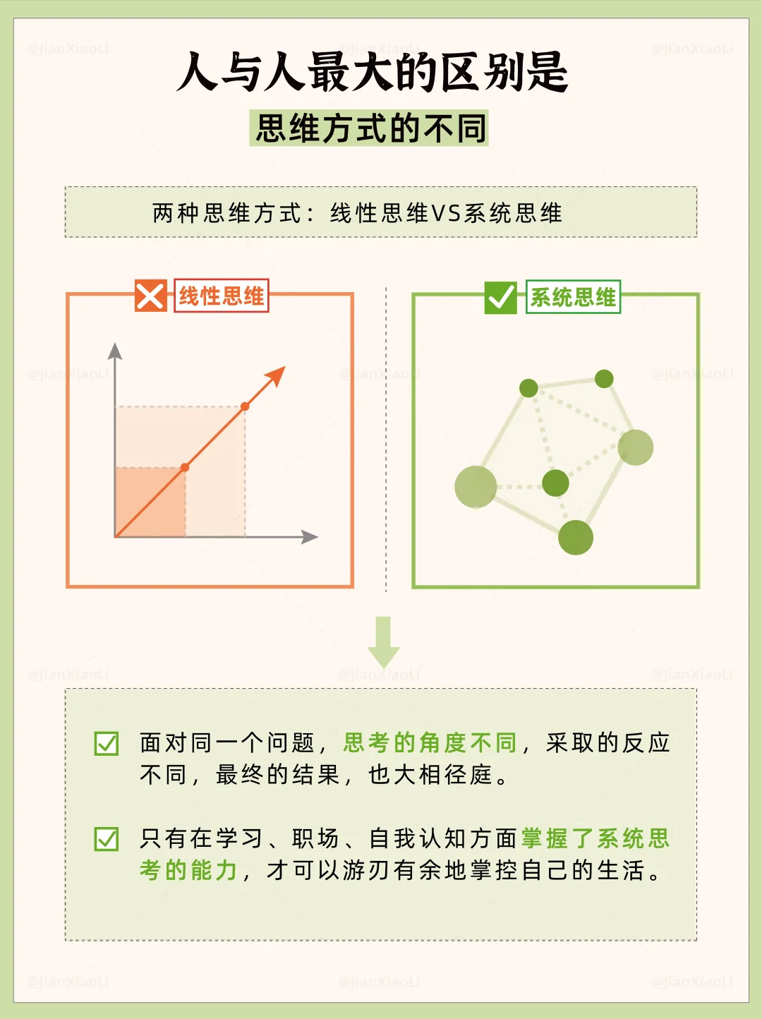 人与人最大的区别就是思维方式的不同✅ 面对同一个问题,思考的角度不同📈 采取的反应不同,最终的结果也不同💬 掌握系统思考的能力,才能游刃有余地掌控自己的生活📚