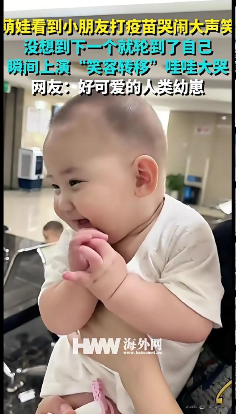 家人们快来看这个人类幼崽,笑到我肚子痛!看到别的小朋友打疫苗哭闹,他在旁边大声笑,结果下一个就轮到自己了,瞬间“笑容转移”,哇哇大哭起来,这反差也太萌了! 咱就是说,这孩子是不是忘了自己也是来打疫苗的?前面还笑得那么开心,轮到自己就秒变表情包,这操作简直绝了!网友都忍不住说:“这是多么可爱的人类幼崽啊!” 不得不说,小孩子的世界就是这么单纯又有趣,一个小小的疫苗就能上演这么一出“喜剧”。你们家娃打疫苗的时候有啥搞笑瞬间不?快来评论区分享一下,让大家也乐呵乐呵~