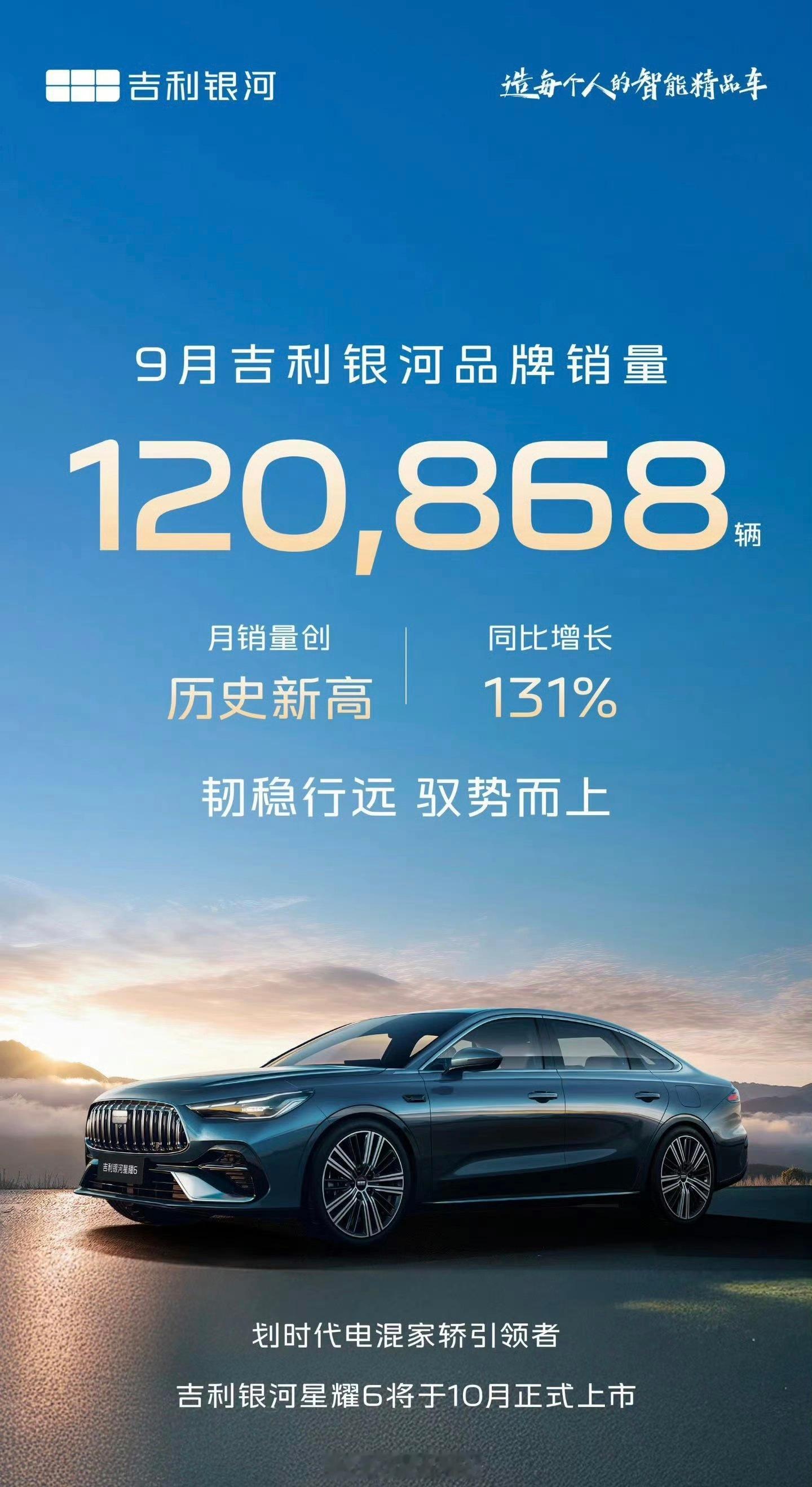 银河品牌九月销量120868辆,又是历史新高啊。吉利银河