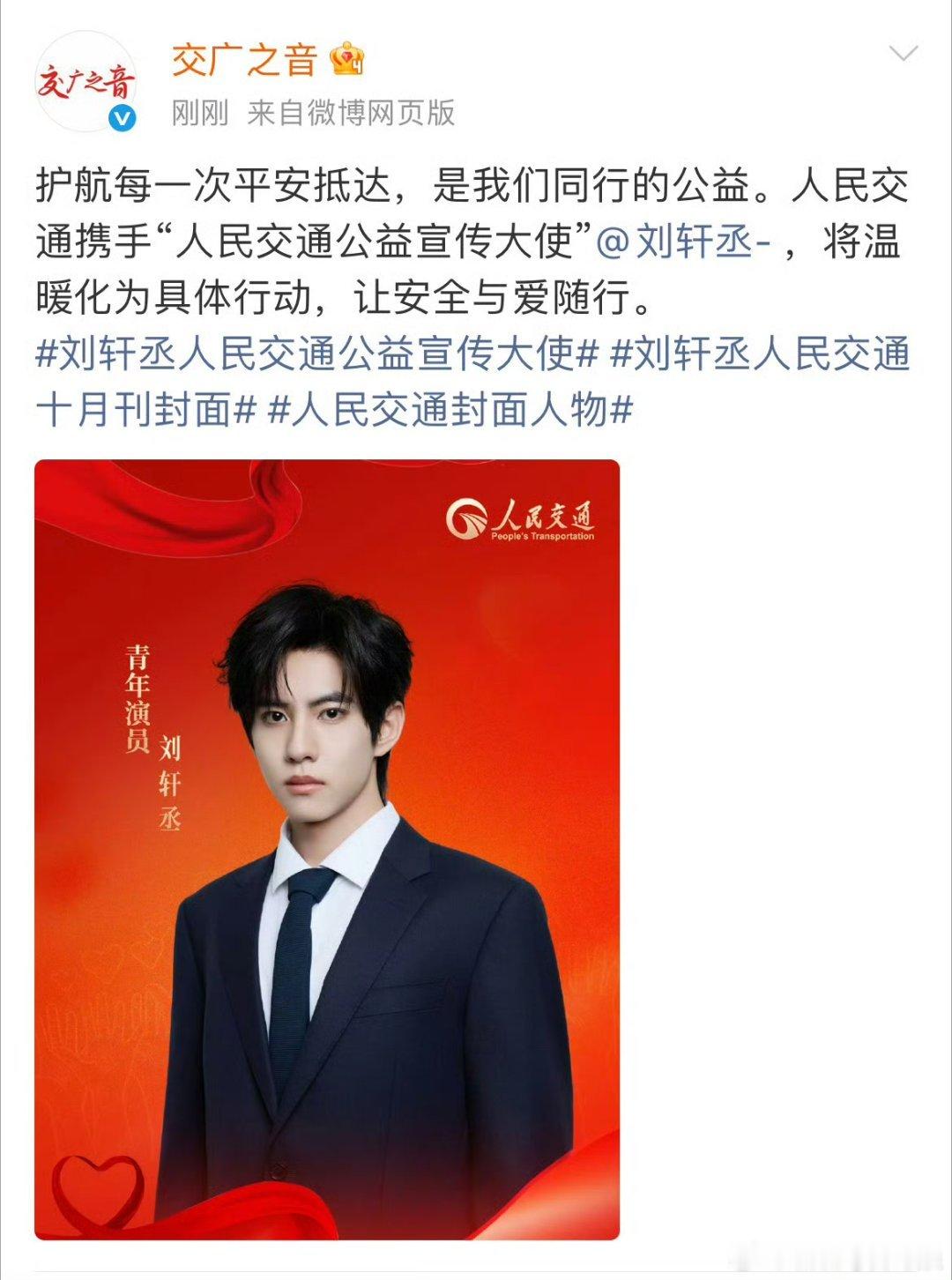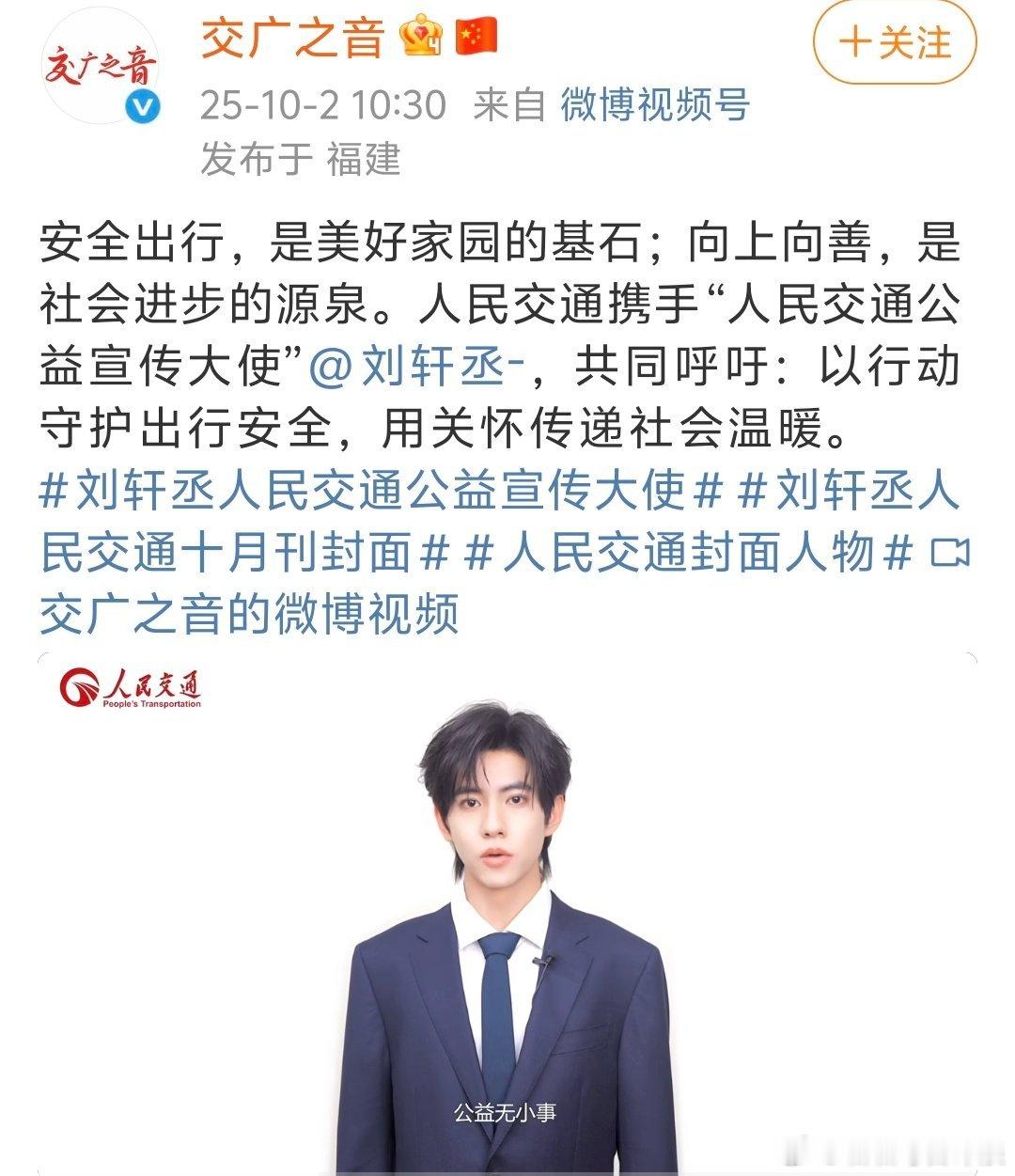 刘轩丞人民交通公益宣传大使官宣!好正的刘轩丞[good]刘轩丞人民交通公益宣传大