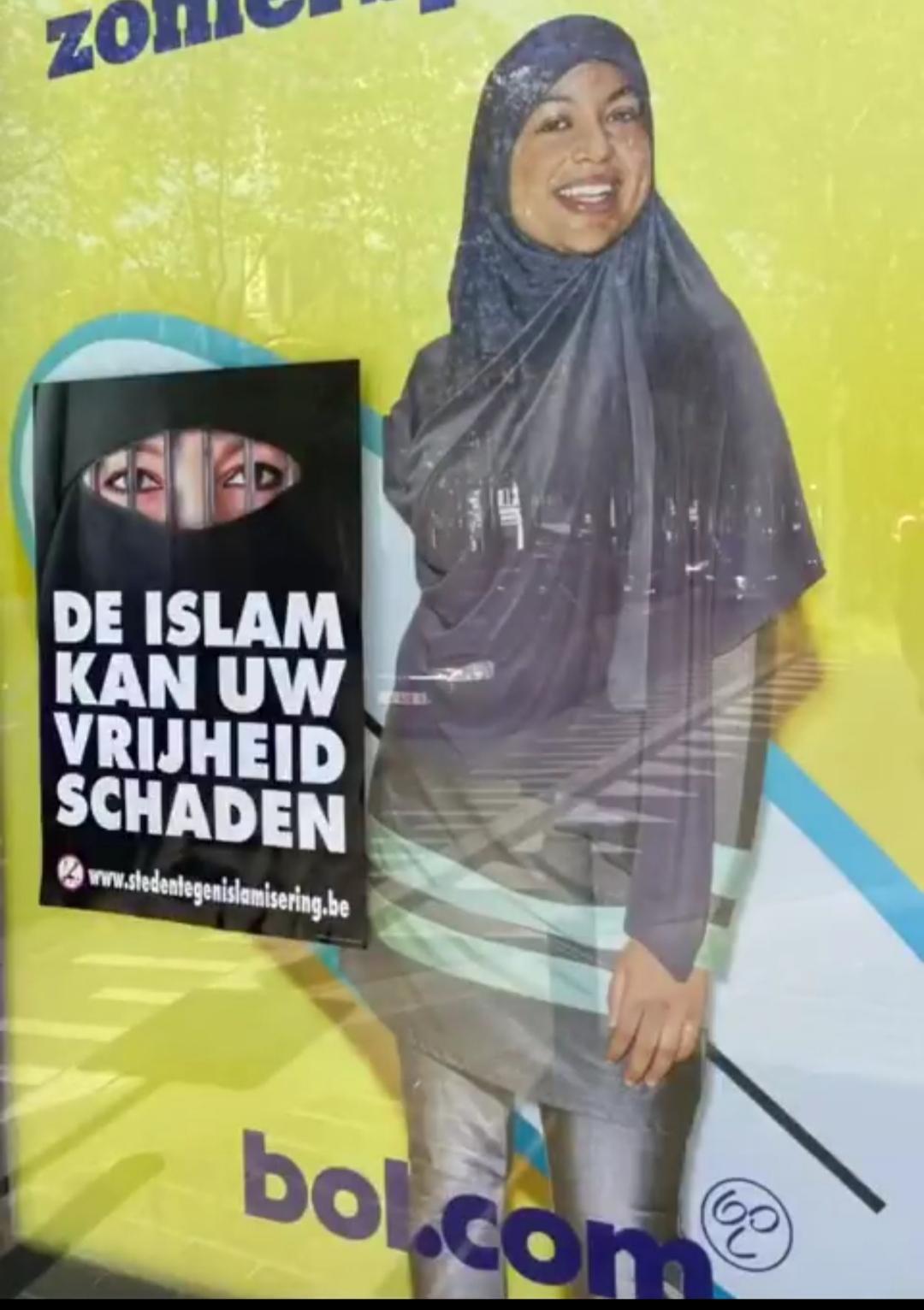 比利时女性对贴在大街的穆斯林宣传广告,海报感到愤怒。 “安特卫普已经变成了伊斯兰堡!伊斯兰化必须停止。”