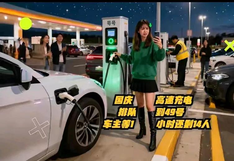 国庆高速充电排到49号,车主等候一小时前边还有14个人,有的服务区实行限号, 限