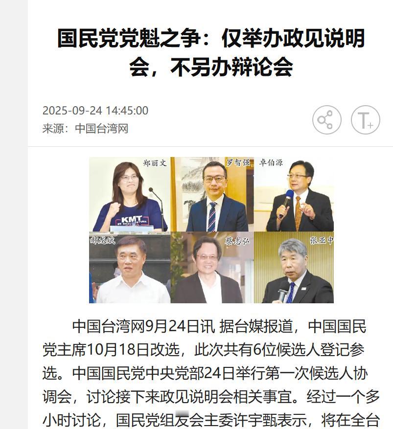 花莲堰塞湖溃堤还没有解决,国民党主席选举要办8场政见发表会,分别在“六都”以及新竹县、屏东县。此消息一出,引发了台湾网友的热议。有人认为,国民党主席选举确实应该多办政见发表会,候选人向外界说明自己的政策主张。 所有人的目光还盯着花莲的泥浆时,国民党抛出的消息直接点燃了舆论。国民党主席选举要办8场政见发表会,场地选在了“六都”外加新竹县、屏东县,声势搞得相当浩大。 可此时的花莲是什么光景?台风“桦加沙”留下的马太鞍溪堰塞湖余威仍在。最新数据显示,灾害已造成15人死亡、8人失联、69人受伤。光复乡的街道被泥浆覆盖,翻覆的车辆歪在路边,停水停电的居民还在等着物资。 更让人窝火的是,救灾现场没看到多少合力,反倒先上演了骂战。台当局行政管理机构负责人卓荣泰去灾区,跟国民党籍花莲民代傅崐萁两度大吵,最后卓荣泰直接甩脸走人。绿营民代还在群组里喊着要找“杀伤力”消息攻击地方,连水利专家李鸿源都忍不住呼吁蓝绿别再斗了,先救人。 就在这节骨眼上,国民党的8场政见会计划砸了下来。支持的人说得挺在理,他们觉得主席选举不是小事,6位候选人郝龙斌、郑丽文、罗智强这些人,确实该多跑几个地方,把“内阁制”改革、青年投票这些主张讲清楚。毕竟选出来的人要带国民党走方向,党员和民众都需要了解政策。 但反对的声音显然更刺耳。有网友直接在PTT上反问:“灾民还在泥里找东西,他们要在空调房里讲政见?” 这话戳中了很多人的痛点。花莲的堰塞湖还维持着红色警戒,坝体冲刷得厉害,地质根本不稳定。志愿者们忙着在台铁光复车站搭服务中心,募来的2亿捐款刚要开始分配,这些实打实的事远比政见会急迫。 朱立伦作为国民党前主席和这次的候选人,自然成了争议焦点。他不是没跑过政见会,早年竞选时就曾连赶三场,对着两千人喊“台湾不能没有国民党”。可现在的时机太微妙了,民众看着郝龙斌批评台当局不用“大罢免”的动员力去救灾,转头就看到国民党要办8场造势式的说明会,难免觉得讽刺。 有人替国民党辩解,说政见会经费由中央出,不用候选人分摊,花300万新台币不算铺张。但网友不买账,他们算的不是钱,是人心。花莲的救灾人员顶着臭味清理垃圾,失联者家属在寒风里等消息,此刻任何政治活动的高调宣传,都像在灾民的伤口上撒盐。 还有人提到,“六都”加新竹、屏东的布局是为了覆盖全台,照顾不同地区的党员需求。可PTT上的留言一针见血:“全台最需要国民党关注的地方是花莲,不是政见会场。” 这种反差让不少人想起朱立伦以前炮轰民进党“政治失能”的话,现在民众反倒用这话回敬过来。 其实问题的核心从来不是要不要办政见会,而是能不能分轻重。国民党不是没做救灾的事,傅崐萁在灾区跟当局争执,郝龙斌天天批评救灾不力,这些行动民众看在眼里。但8场会议的规模和时机,难免让人觉得国民党把选举放在了救灾前面。 就像有网友说的:“讲政见用一场电视会也能讲清楚,非要跑8个地方摆排场?” 国民党中央其实也安排了10月5日的电视政见会,这个安排本可以更突出,等花莲灾情稍缓再办地面场次,舆论反响肯定不一样。 现在的局面挺尴尬。支持者觉得批评者上纲上线,选举和救灾本可以并行;反对者觉得国民党没抓住重点,忘了“民为贵”的老理。花莲的泥浆还没干,这场关于“政见会该不该办”的争论还在发酵,而最该被关注的灾民,还在等着一个更务实的答案。 官方信源:中国台湾网《国民党党魁之争:仅举办政见说明会,不另办辩论会》