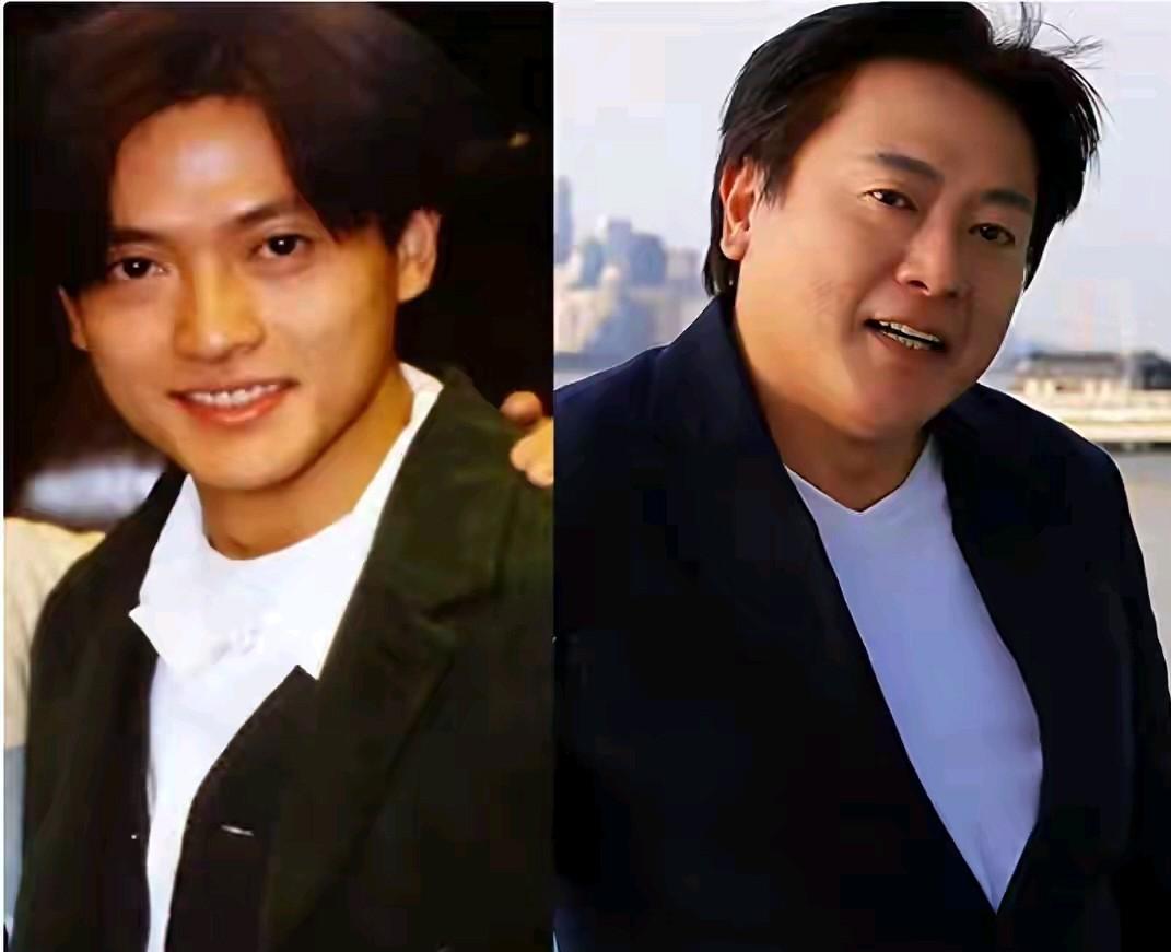 你说图上的这两人会是同一个人吗?90%的人都看不出来他们会是同一个人?剩下10%能看出来那是因为是他的亲人和朋友,他真就是同一个人,他就是香港艺人魏骏杰,曾经那个英俊潇洒,风流倜傥,玉树临风,风度翩翩的公子少年,如今变成了一个油腻大叔,原来标准立体的五官如今根本没有立体可言,五官变形,身材走样,整就一个中午胖大叔形象。