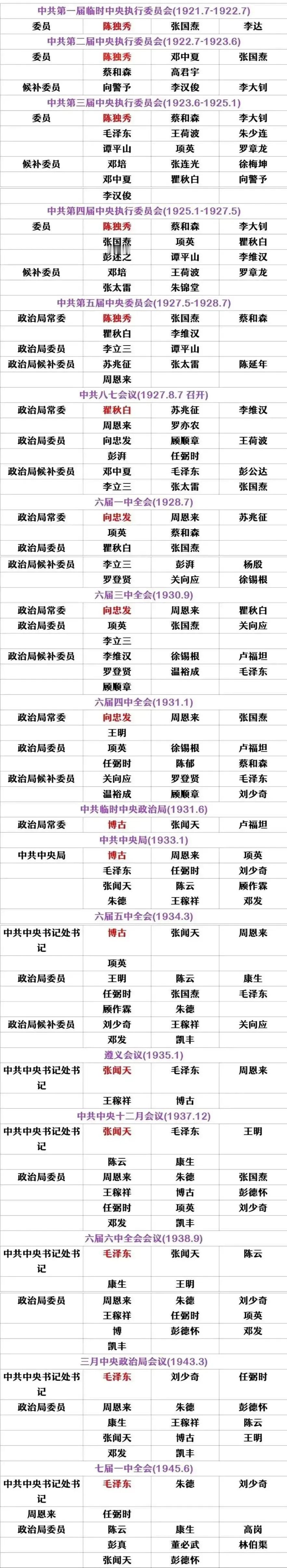 1921年——1945年,第一届至七届中央核心成员。历史知识历史人物